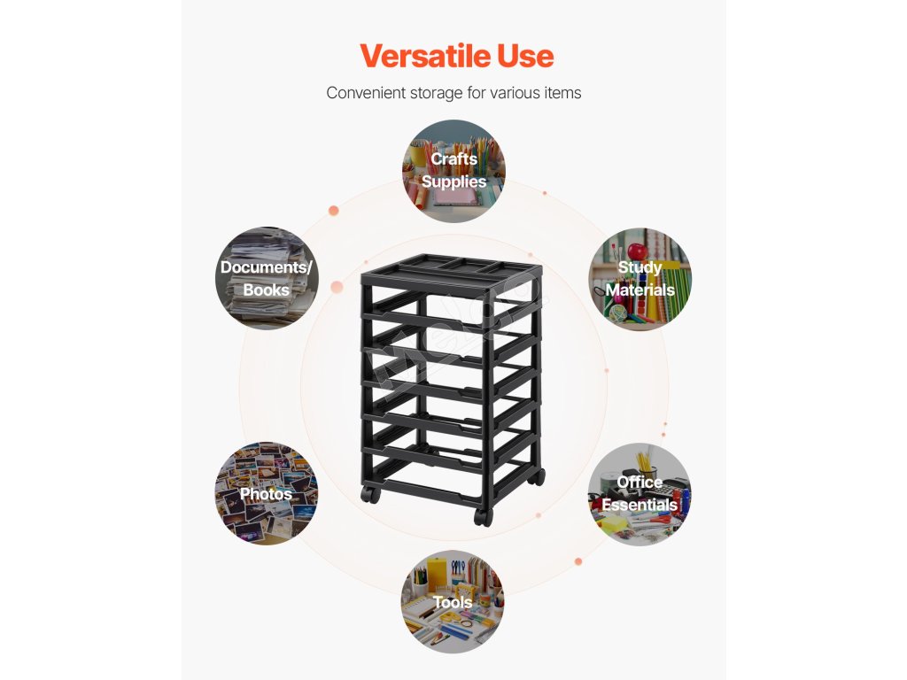 Tento viacúrovňový pojazdný úložný vozík na výstrižky poskytuje flexibilné organizačné riešenie, takže je ideálny na použitie v domácnostiach, kanceláriách a iných zariadeniach. Bez námahy si ľahko zorganizujete a uložíte svoje veci.