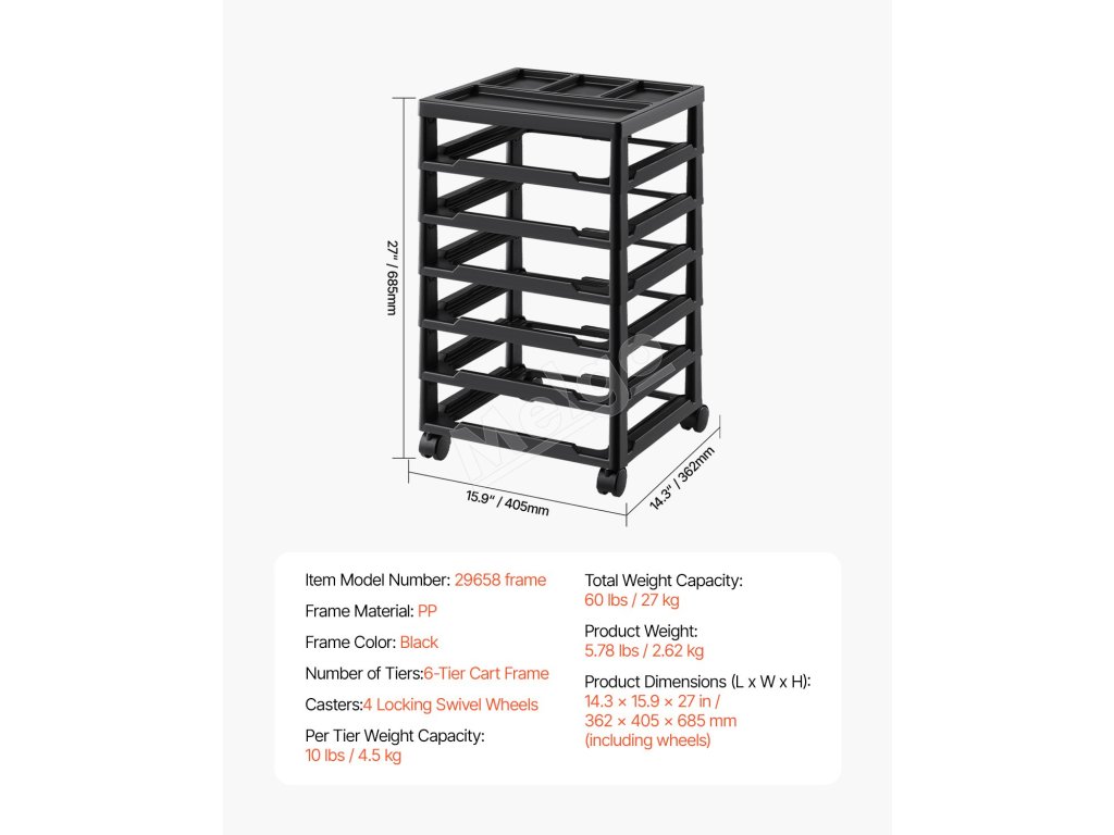 Tento 6-vrstvový viacúčelový úložný organizér na kolieskach má veľkú kapacitu a mobilný dizajn, vďaka čomu je ideálnym riešením pre vaše potreby skladovania a organizácie. Rozlúčte sa s neporiadkom a privítajte usporiadaný priestor.