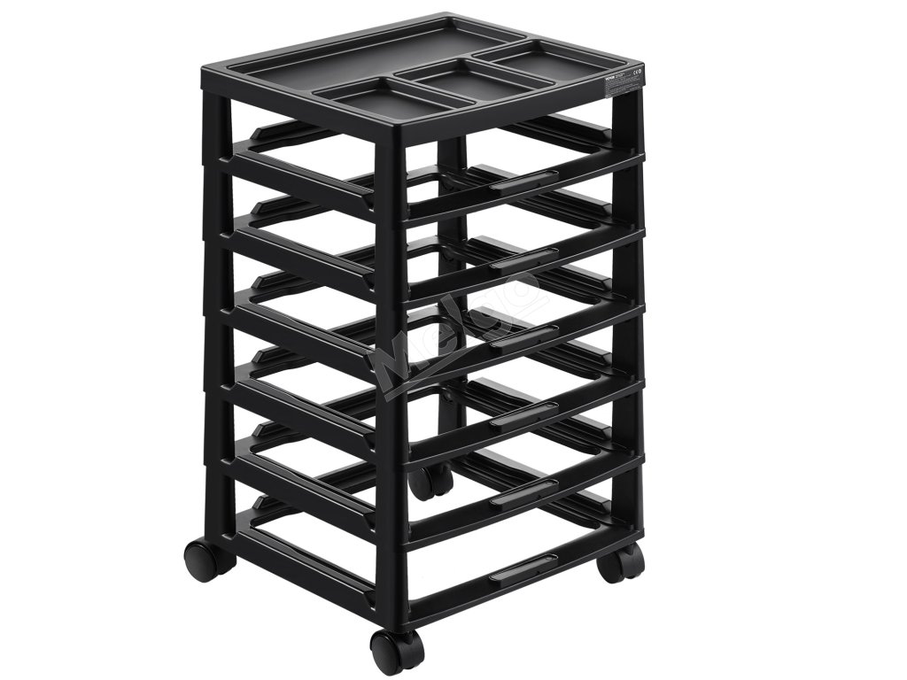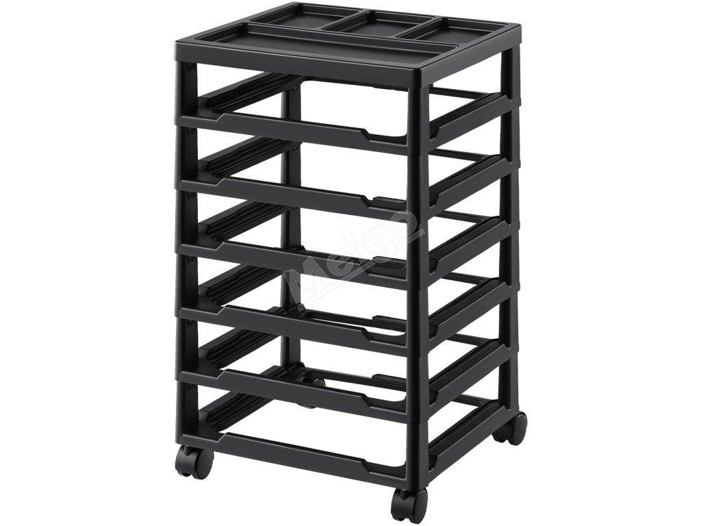 Úložný vozík na tvorenie 6 políc s organizérom, čierny rám, 4 kolieska