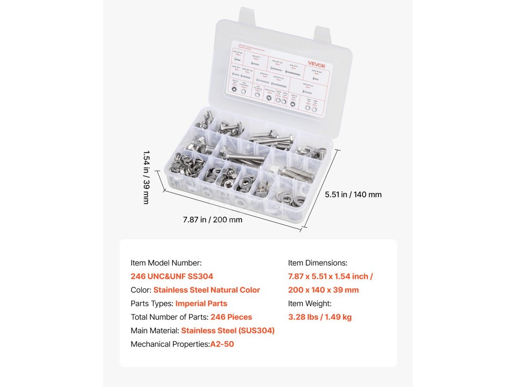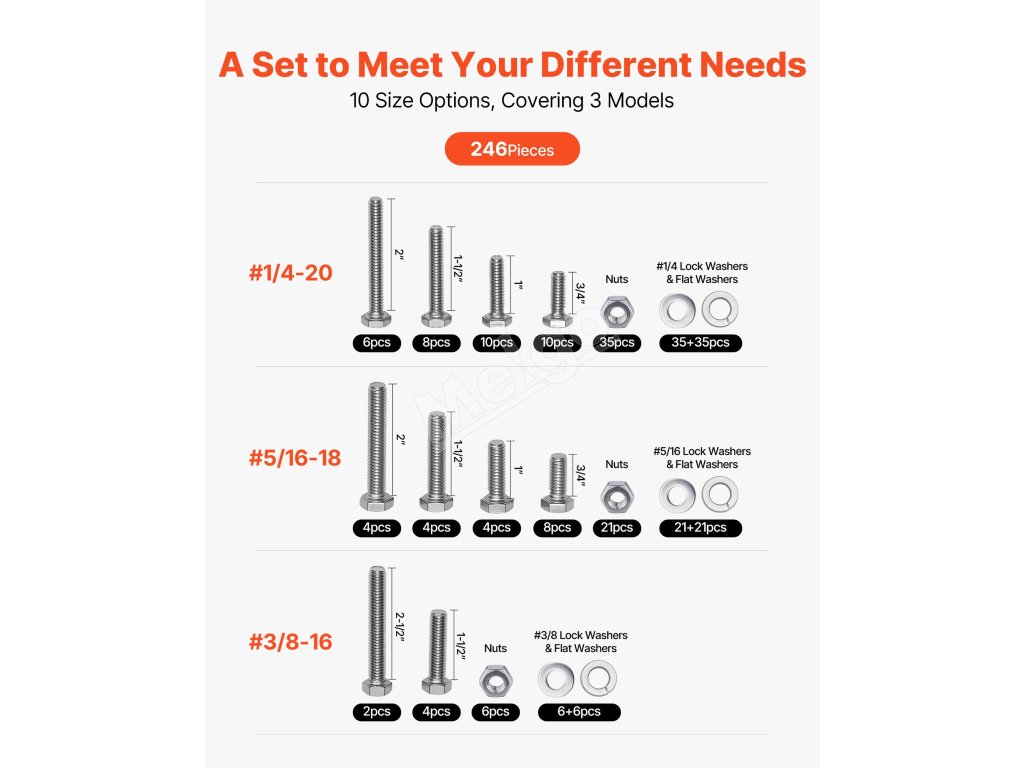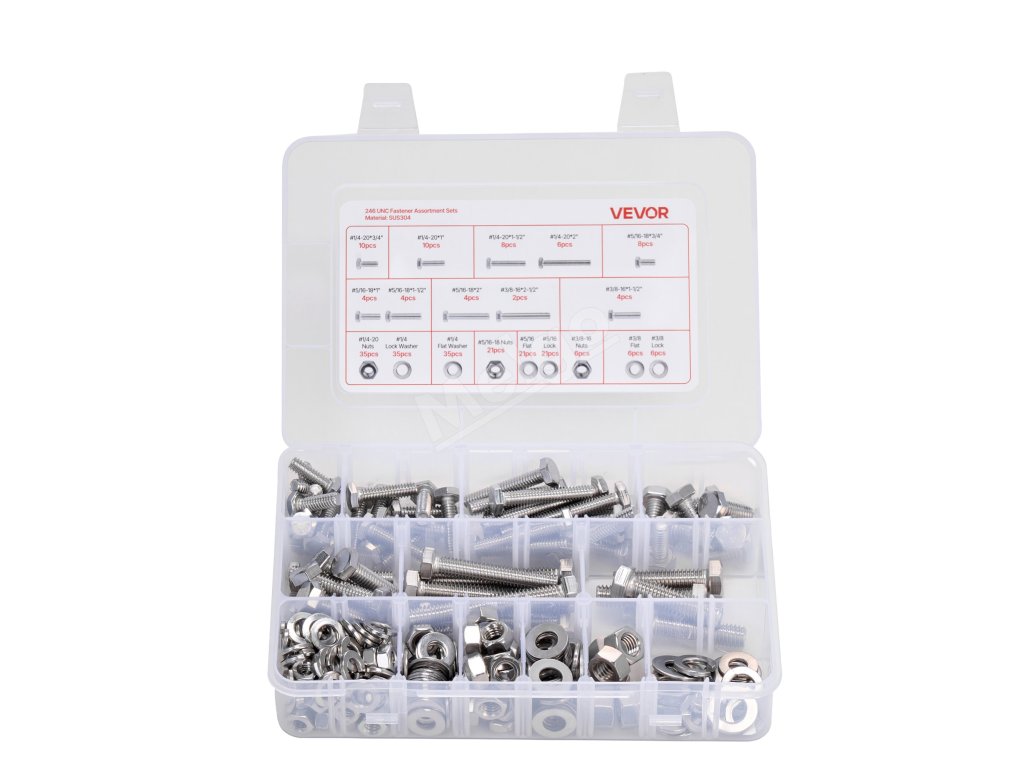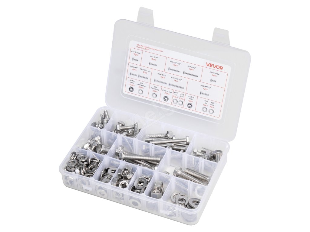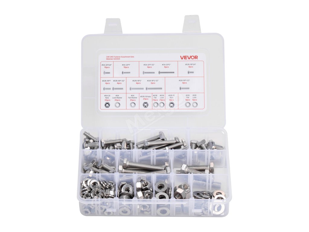 Sada skrutiek, matíc a podložiek 246 ks, nerez, 1/4-20, 5/16-18, 3/8-16