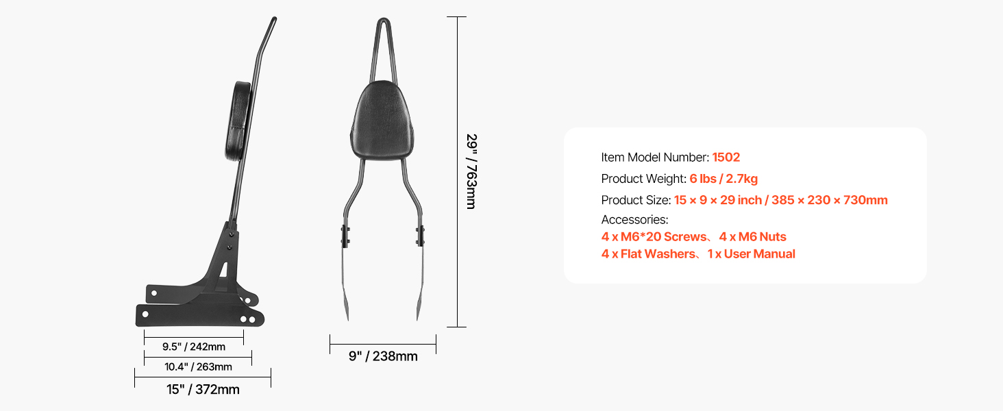 Vďaka elegantnému, klasickému vzhľadu je tento sissy bar pre motocykle viac než len funkčný doplnok - je to štýlová modernizácia vášho motocykla. Je ideálny na kempovanie, dlhé výlety a dobrodružstvá v prírode, vďaka čomu bude vaša jazda príjemnejšia a pohodlnejšia.