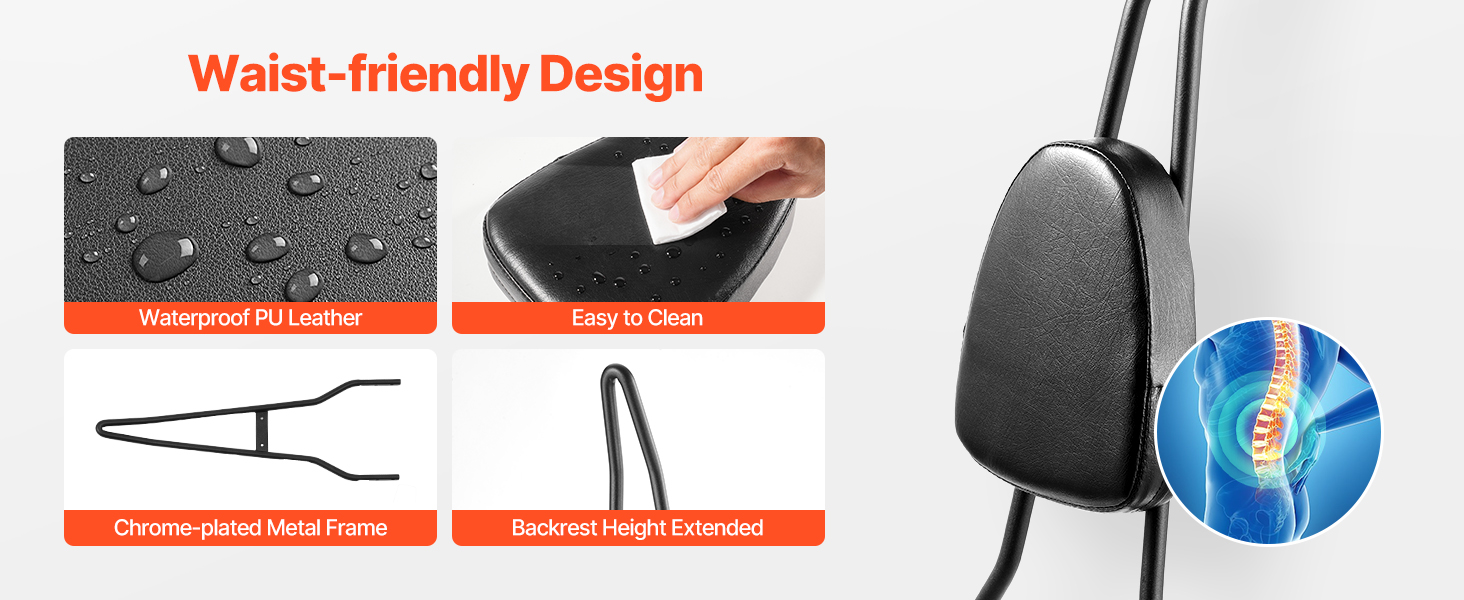 Podložka operadla je vyrobená z nepremokavej kože a je vybavená penou s vysokou hustotou, navrhnutou s ergonomickou oporou na zníženie tlaku v bedrovej oblasti. Prémiový rám je odolný proti korózii, čo zaručuje dlhodobú stabilitu a odolnosť bez porušenia.