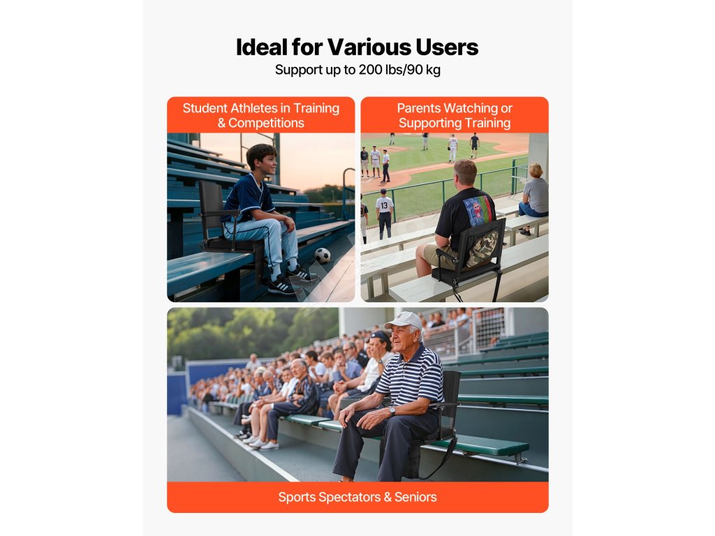 S našou skladacou sedačkou na štadión premeníte akékoľvek podujatie pod holým nebom na pohodlný zážitok. Vysokokvalitné materiály a spoľahlivý dizajn spájajú eleganciu a funkčnosť, ideálne pre študentov športovcov na tréningu, rodičov navštevujúcich tréningy a divákov alebo starších používateľov.
