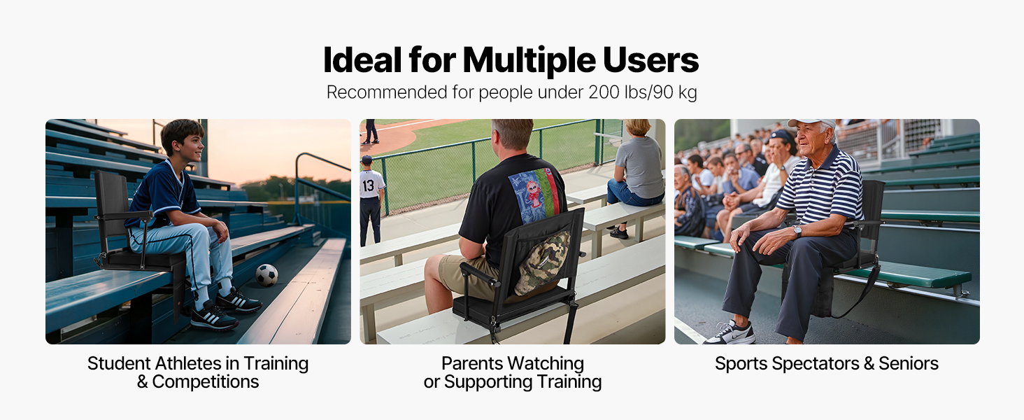 Toto skladacie sedadlo na tribúnu si môžete vziať kamkoľvek. Je určená pre študentov športovcov, rodičov na tréningoch a športových divákov alebo starších dospelých, spája odolnosť s prenosnosťou a ponúka pohodlné sedenie na súťažiach, tréningoch alebo vonkajších podujatiach.