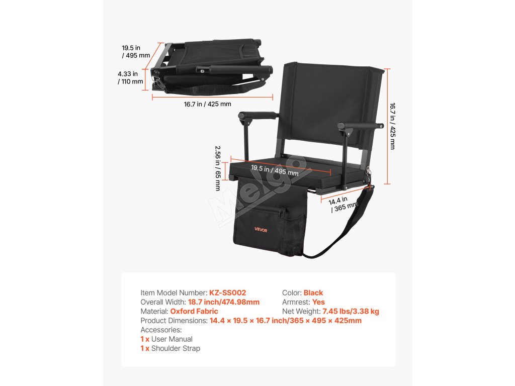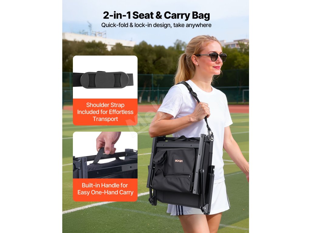 Toto štadiónové sedadlo s opierkou chrbta je navrhnuté na jednoduchú prepravu a obsahuje dva ramenné popruhy a bočné držadlo. Prenášajte ho na chrbte, aby ste si uvoľnili ruky, alebo uchopte ergonomickú bočnú rukoväť na rýchly prístup, čím si zaistíte pohodlie a komfort počas hier alebo vonkajších podujatí.