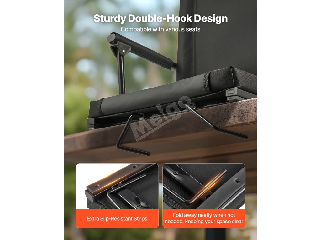 Toto sedadlo na štadión je vybavené dvoma skrytými háčikmi pod stoličkou, ktoré sa dajú v prípade potreby vytiahnuť a udržiavajú ho stabilné na tribúnach, lavičkách alebo rovných povrchoch. Užívajte si pohodlné sedenie a spoľahlivú oporu pri športových podujatiach, koncertoch alebo vonkajších aktivitách, nech už idete kamkoľvek.