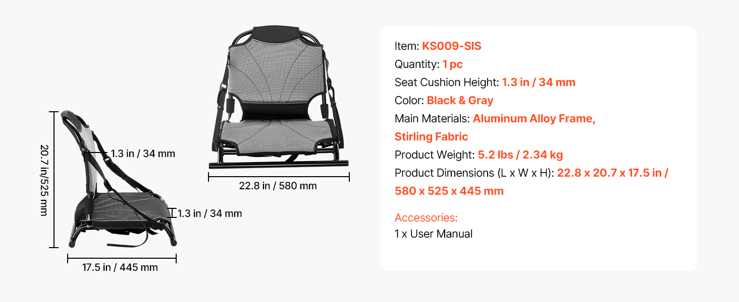 Naše sedadlo pre kajak je postavené na pevnom, odolnom ráme z hliníkovej zliatiny a poskytuje stabilnú oporu. Povrch sedadla je vyrobený z priedušnej, odolnej tkaniny, ktorá je príjemná na dotyk a odoláva slnečnému žiareniu a striekajúcej vode pri používaní vonku.