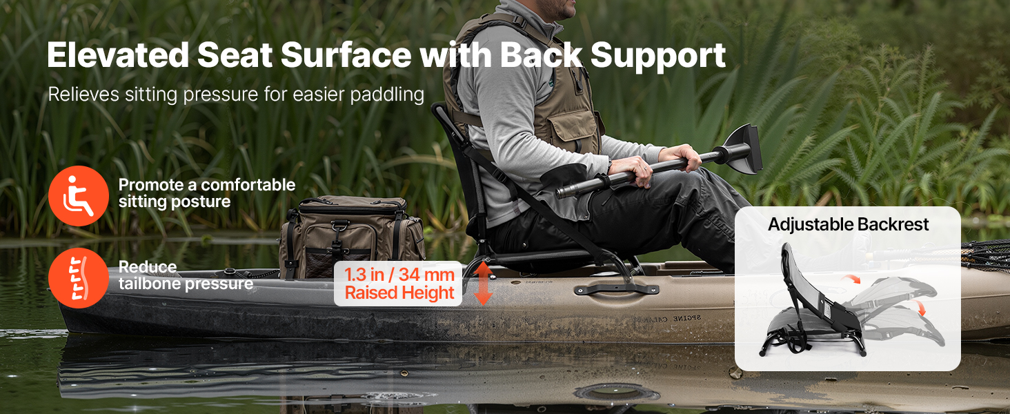 Toto sedadlo pre kajak je navrhnuté tak, aby pomáhalo zmierňovať únavu počas dlhých hodín na vode. Systém sedadla poskytuje plnú oporu od bokov po chrbát, vďaka čomu je rybolov, plavba a objavovanie pohodlné od začiatku až do konca.