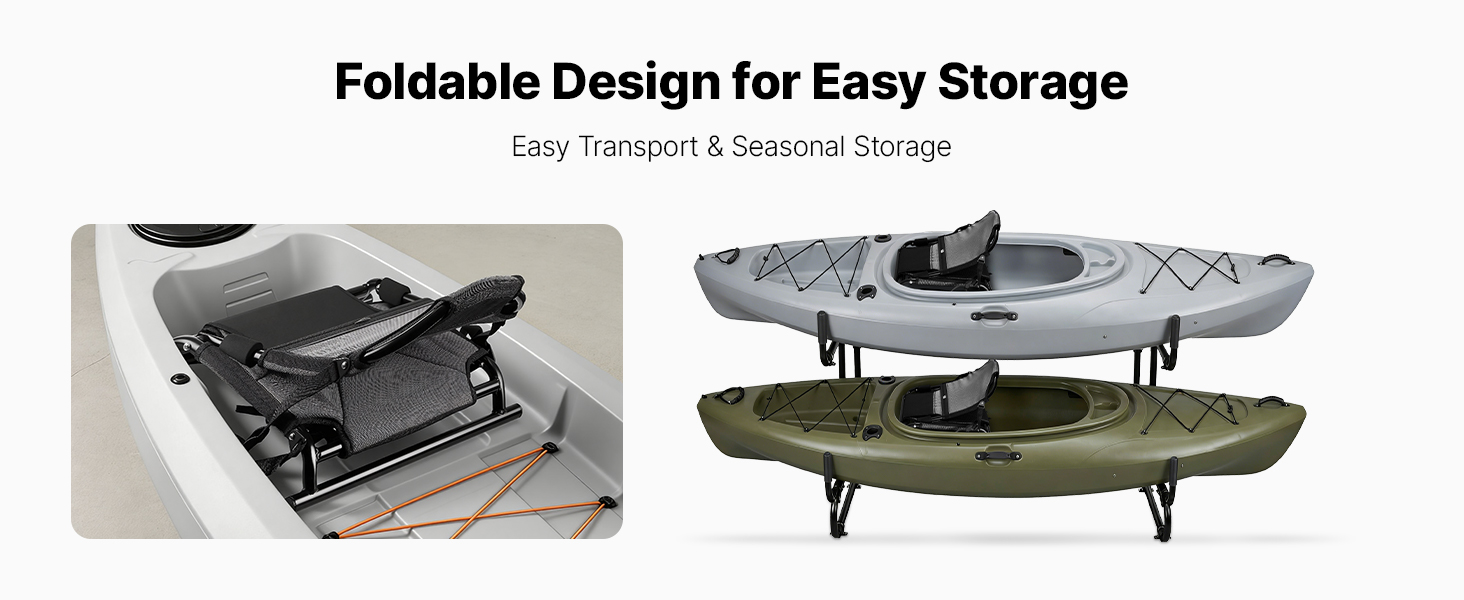 Sedadlo do kajaku s opierkou chrbta sa dá rýchlo zložiť bez demontáže, čím sa získa kompaktný priestor na uskladnenie. Je ľahko prenosné v aute, kokpite alebo taške na výstroj, čo je praktické pre každodenné použitie a sezónne uskladnenie.