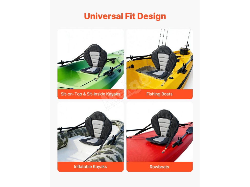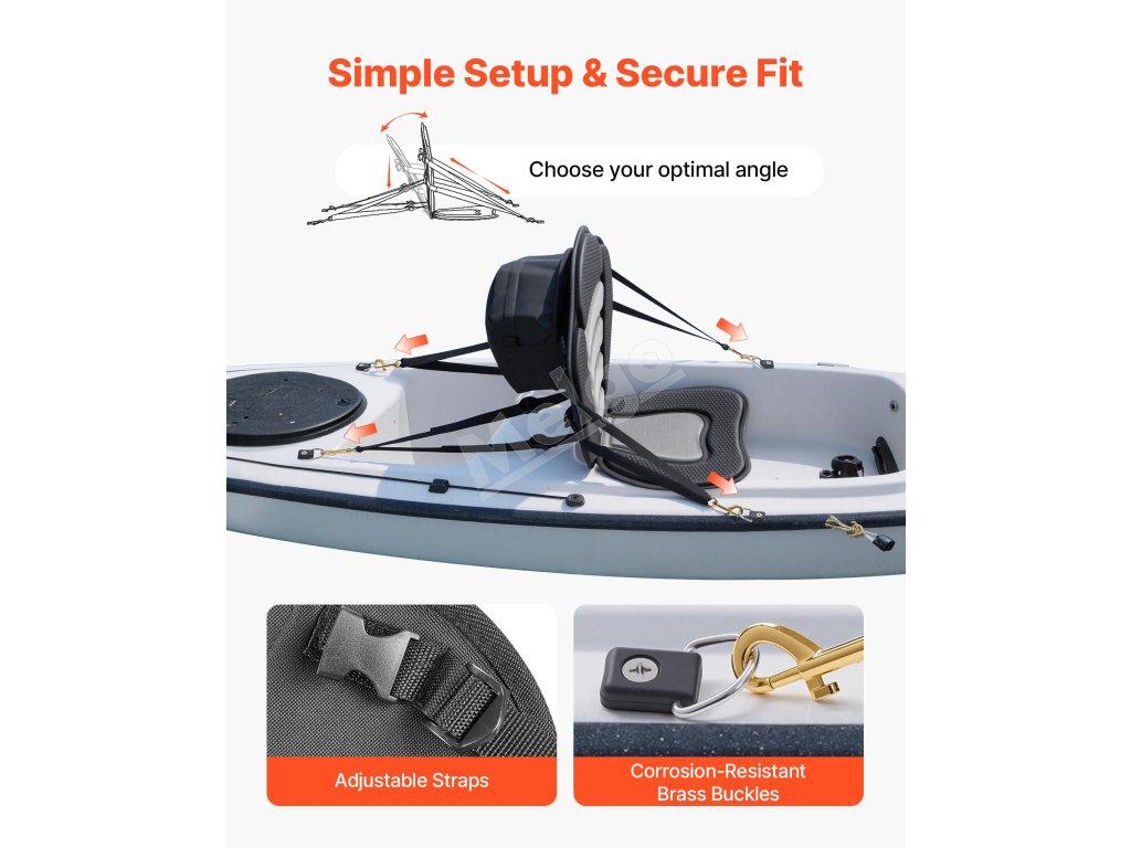 Naše sedadlo pre kajak je vhodné pre sit-on-top kajaky, nafukovacie kajaky, SUP dosky a malé člny. Je ideálne pre vášnivých milovníkov vodných športov, rodinnú rekreáciu a príležitostné plavby a dá sa ľahko inštalovať a opakovane odstraňovať.