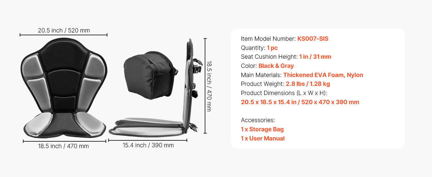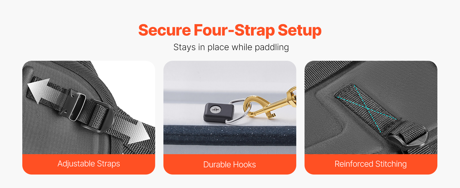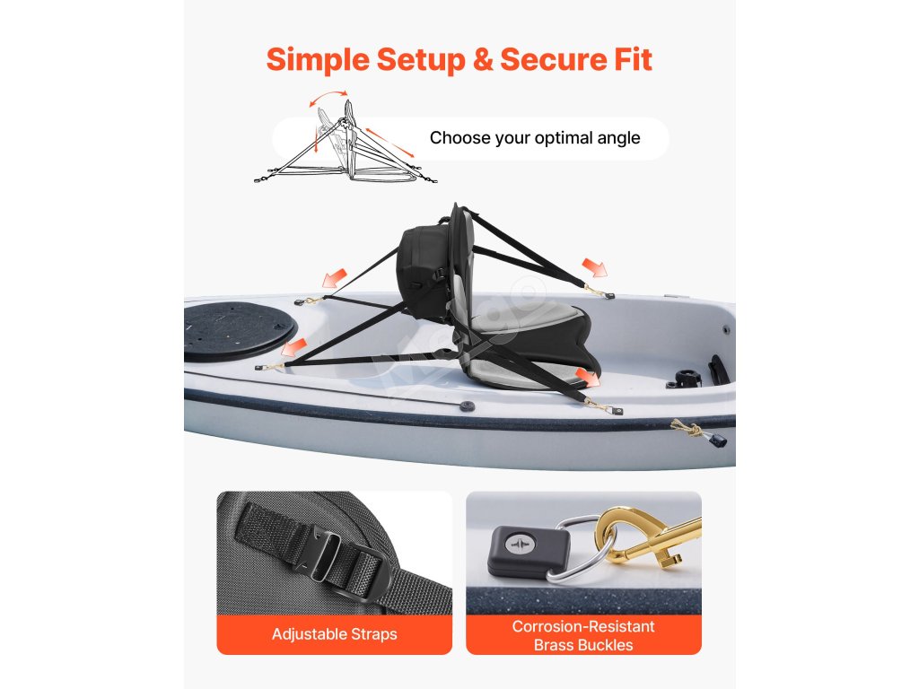Toto náhradné sedadlo do kajaku je vybavené dlhšími PP nastavovacími popruhmi a veľkými mosadznými háčikmi, vďaka čomu sa dá bezpečnejšie pripojiť k rôznym kajakom a nafukovacím plavidlám. Obopínajúci dizajn pomáha obmedziť pohyb zo strany na stranu, čím sa zlepšuje dlhodobá stabilita.