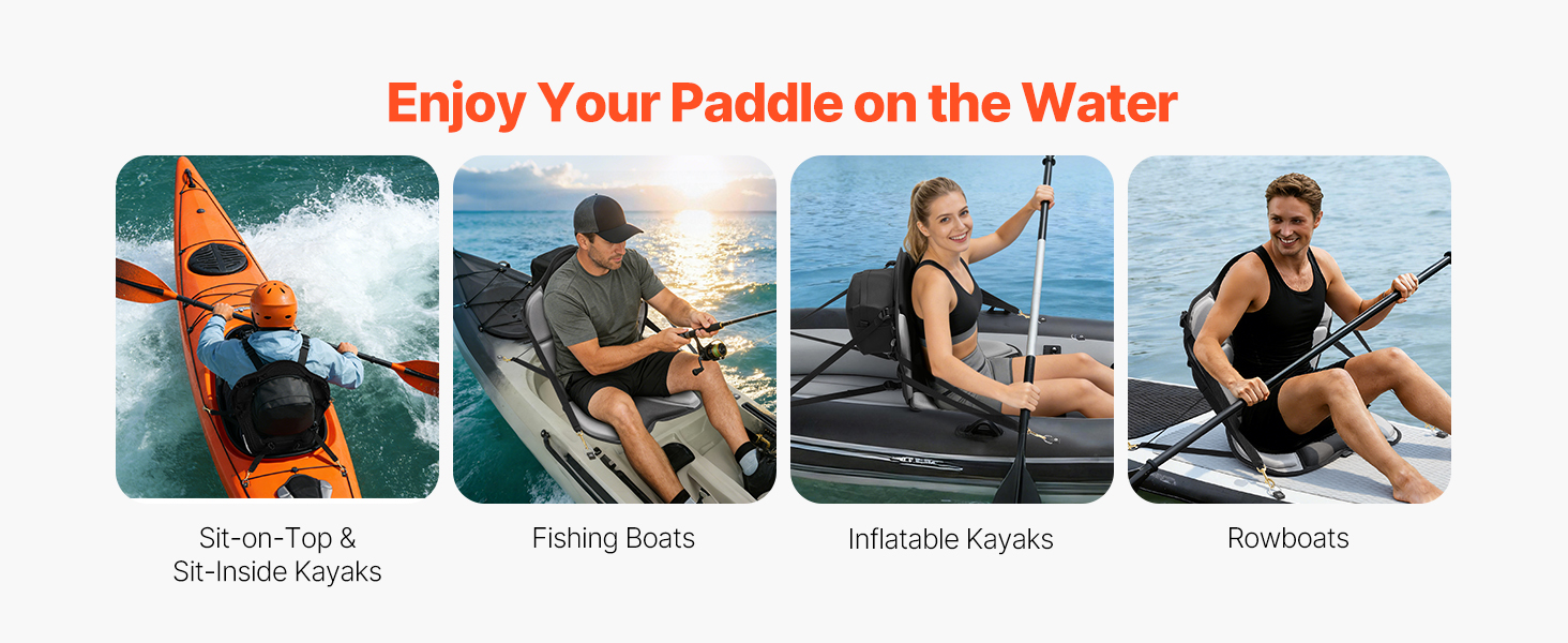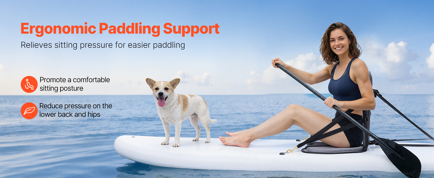 Naše sedadlo na paddleboard je navrhnuté s vysokým operadlom a vystuženými bočnými krídlami, poskytuje plnú oporu a pomáha výrazne znížiť tlak na kostrč a dolnú časť chrbta. Nech už lovíte ryby celé hodiny, plavíte sa alebo objavujete jazero, pomáha vám udržať pohodlnú polohu pri sedení.
