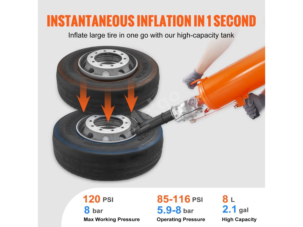 Ručný vzduchový osadzovač pneumatík 2.1 Gal/8 L, 85–116 PSI