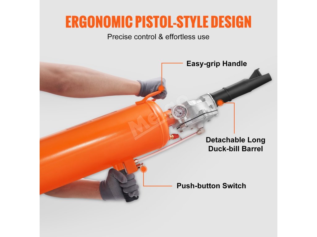 Zažite optimálne pohodlie a ovládanie vďaka ergonomickému dizajnu pištole nášho sedadla. Poskytuje pohodlné uchopenie, vďaka čomu môžete s hustilkou ľahko manipulovať. A konštrukcia minimalizuje vplyv spätného rázu, čím poskytuje stabilný a bezpečný proces nafukovania.