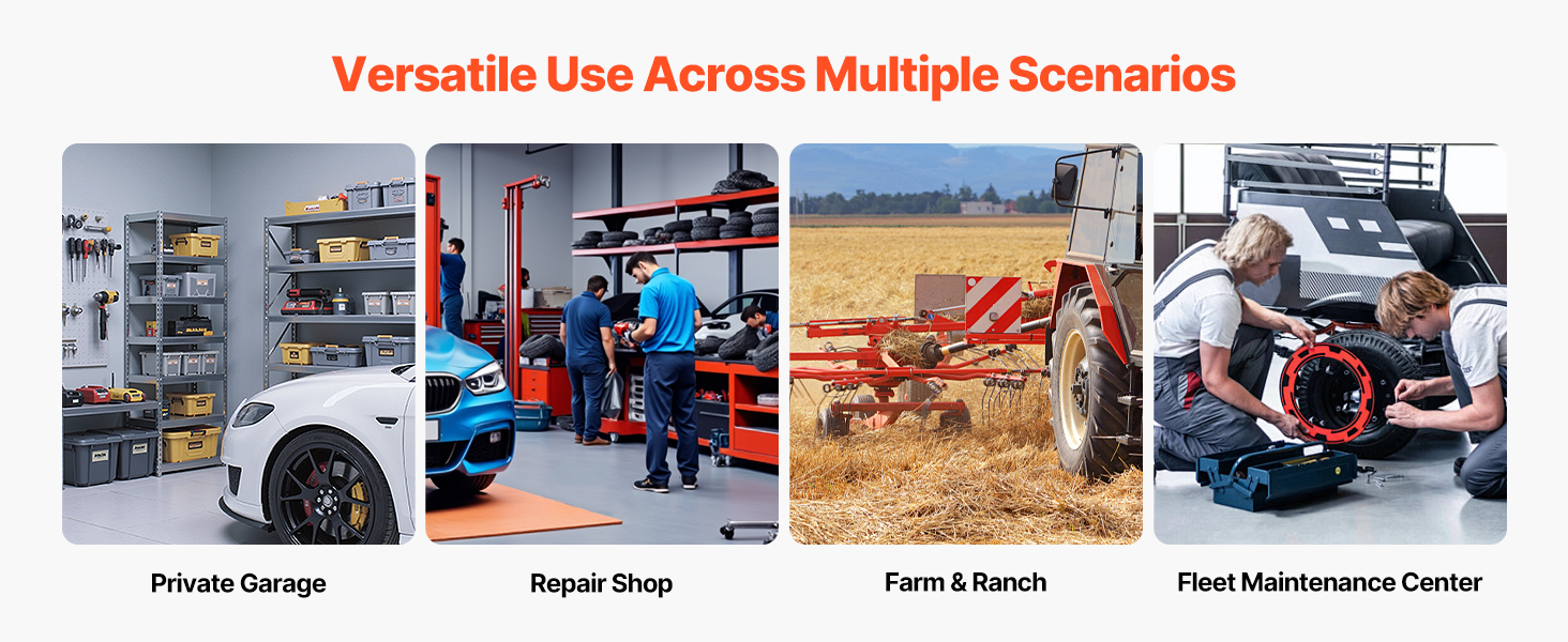 Ideálne pre domáce garáže, opravovne, farmy, ranče a údržbu stavebných vozidiel. Čistič pätiek pneumatík spĺňa požiadavky na hustenie rôznych ťažkých pneumatík. Je ľahký, ľahko sa s ním manipuluje a jednoducho sa skladuje.