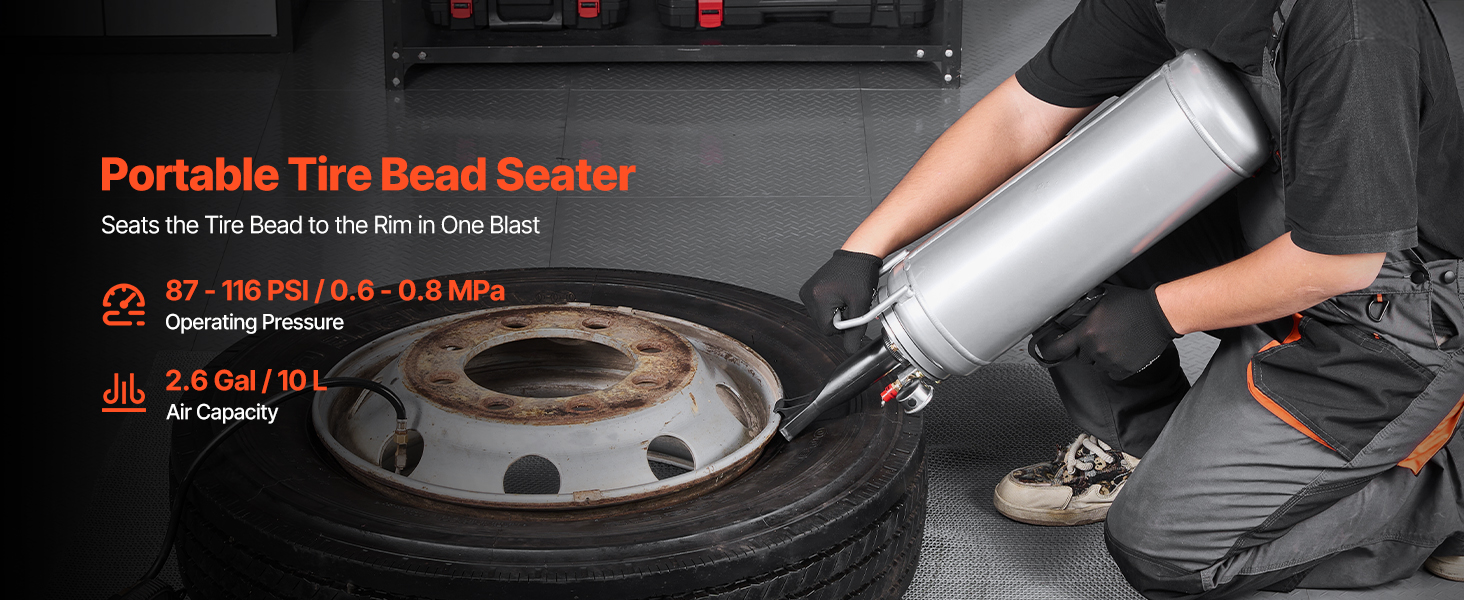 Prenosný ručný osadzovač okrajov pneumatík 2.6 gal/10 l, 87–116 PSI