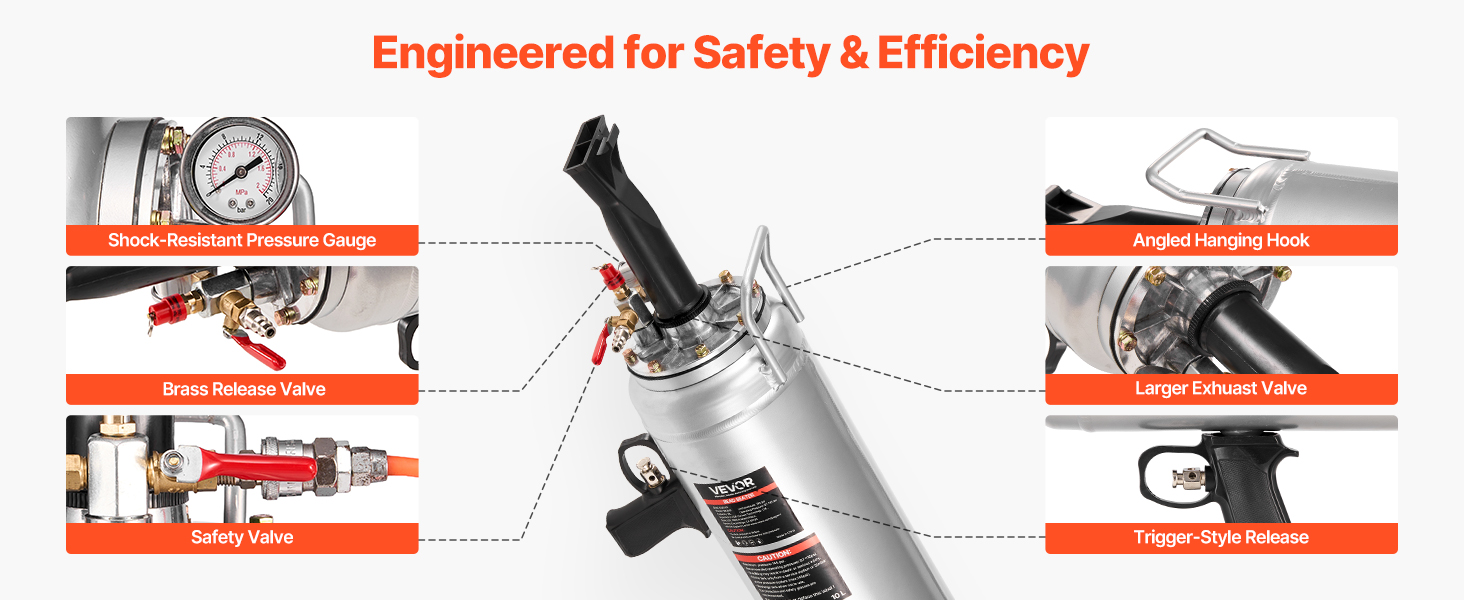 Ideálne pre domáce garáže, opravovne, farmy a ranče. Pneumatiková pištoľová pištoľ spĺňa požiadavky na hustenie rôznych zariadení na výrobu pneumatík. Je ľahký, ľahko sa s ním manipuluje a jednoducho sa skladuje.