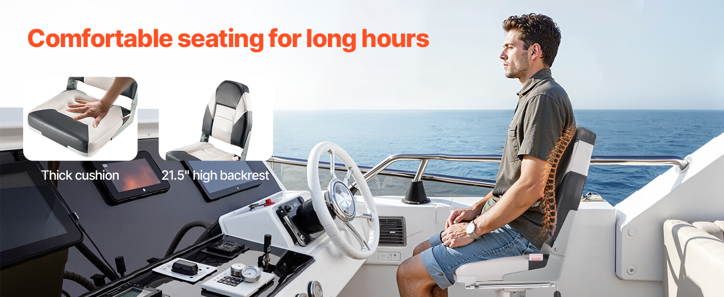 Skvele sa hodí na inštaláciu na rybárske člny, člny s plošinou, malé jachty alebo miesta na vedenie kanoe či paluby. Naše skladacie sedadlo do rybárskeho člna je ideálnym spoločníkom pri námorných aktivitách, či už sa plavíte na člne, rybárčite alebo jazdíte autom.