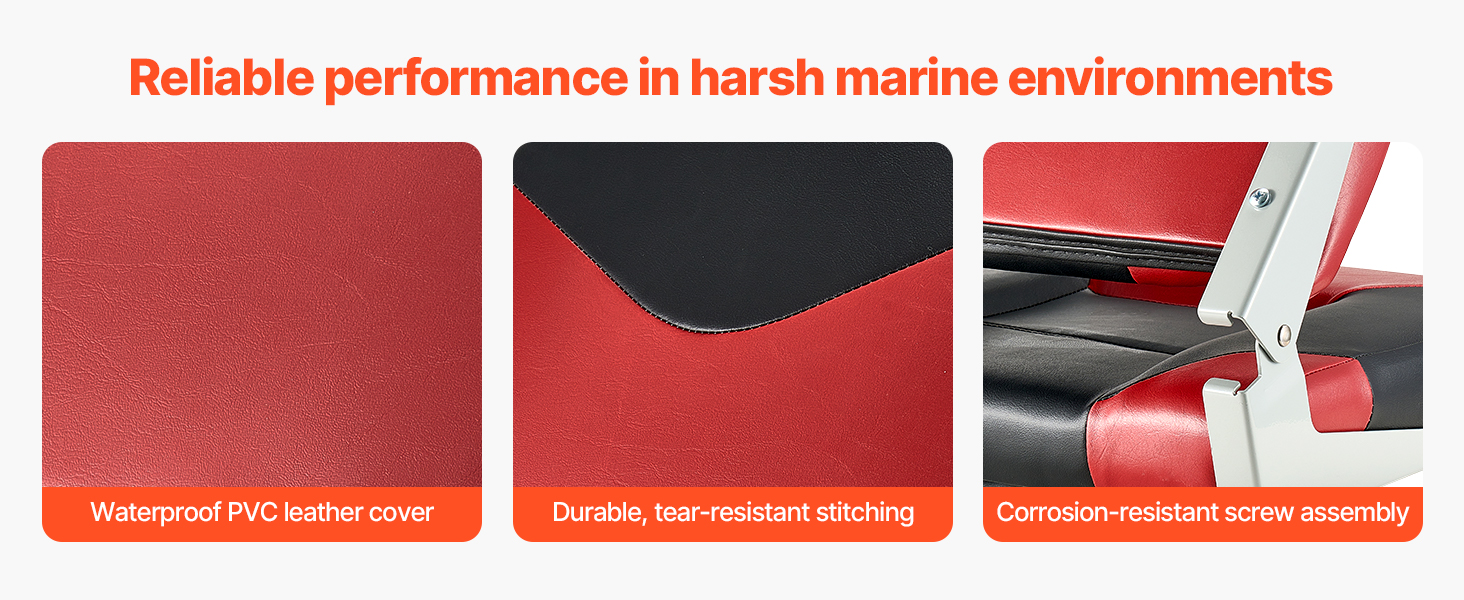 Toto sedadlo do člna je obalené odolnou, pevne prešitou kožou z PVC a upevnené kovovými skrutkami odolnými proti korózii, je vodotesné, odolné proti korózii a skonštruované tak, aby odolalo živlom. Či už ide o slanú vodu, slnko alebo dážď, toto sedadlo si zachováva svoju výkonnosť a zabezpečuje dlhotrvajúcu jazdu na vode.