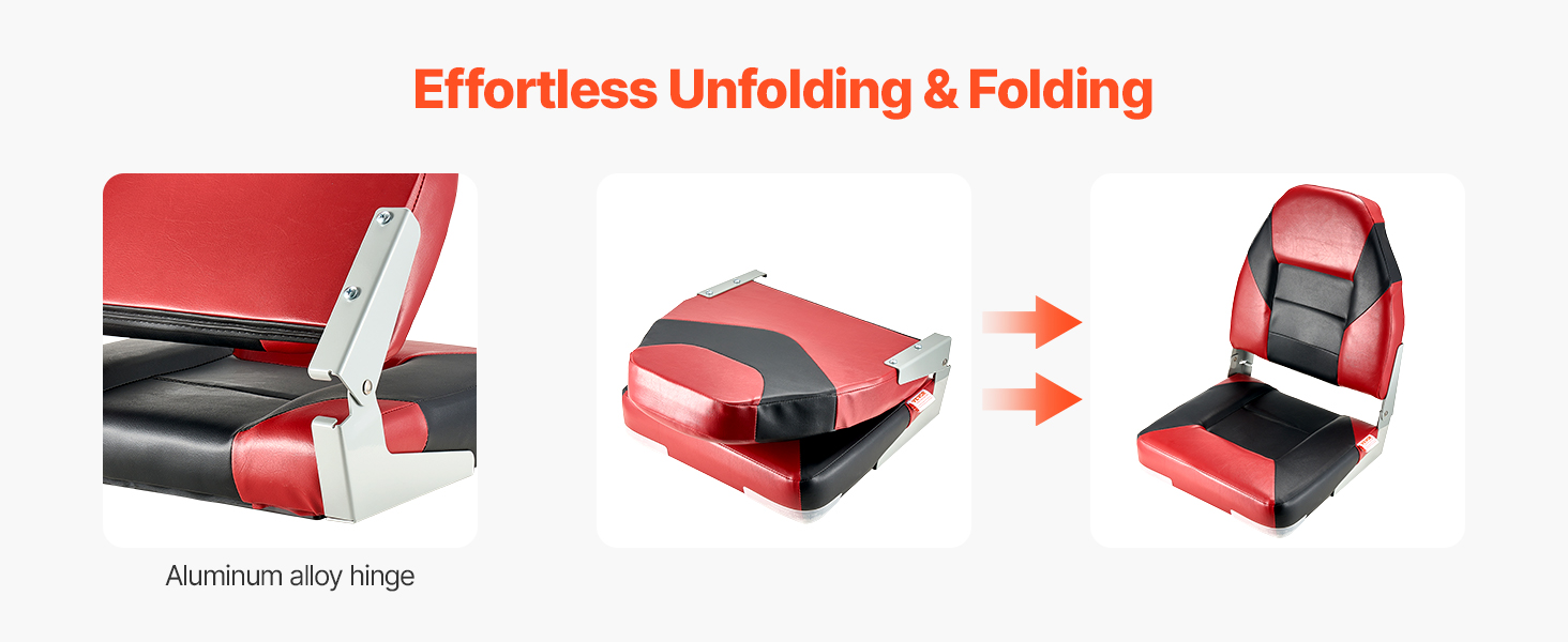 Skladacia konštrukcia umožňuje jednoduché nastavenie operadla. Keď sa však nepoužíva, naše sklápacie sedadlo do lode sa zloží, aby sa ušetrilo miesto na pohodlné uskladnenie.