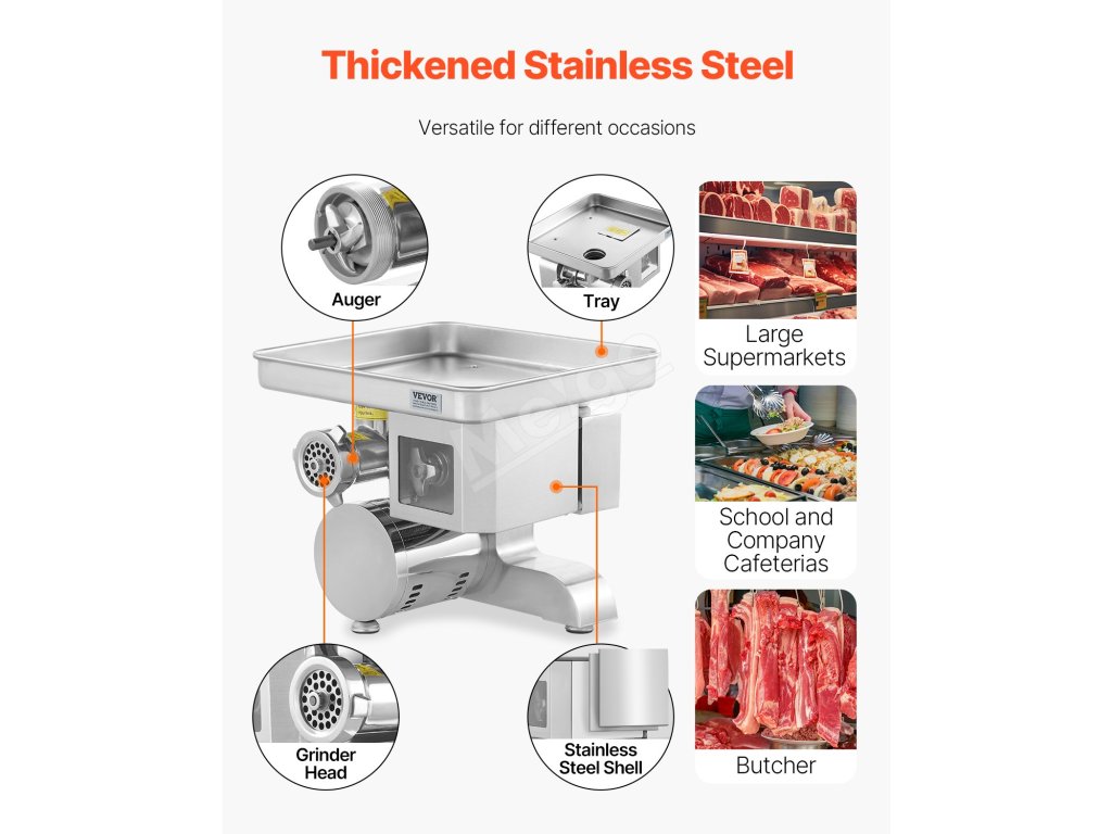Tento komerčný mlynček na mäso a krájač vhodný na mletie a krájanie mäsa, rýb a zeleniny je ideálny pre kuchyne, reštaurácie a továrne - slúži na osobné aj komerčné potreby.