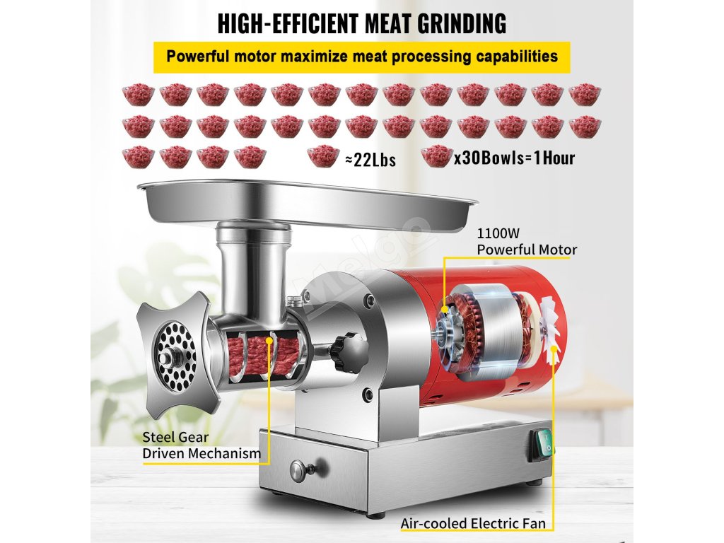Vďaka vysoko výkonnému motoru s výkonom 1100 W a rýchlosti otáčania 180 otáčok za minútu môže mlynček merať až 661 libier mäsa za hodinu, čo výrazne zvyšuje účinnosť mletia mäsa.