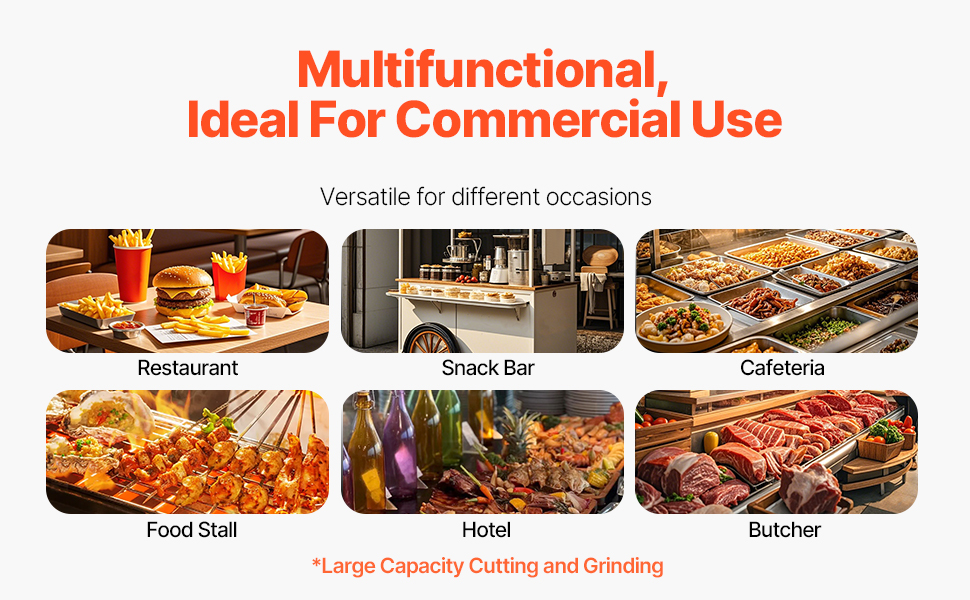 Tento komerčný mlynček na mäso a krájač vhodný na mletie a krájanie mäsa, rýb a zeleniny je ideálny pre kuchyne, reštaurácie a továrne - slúži na osobné aj komerčné potreby.