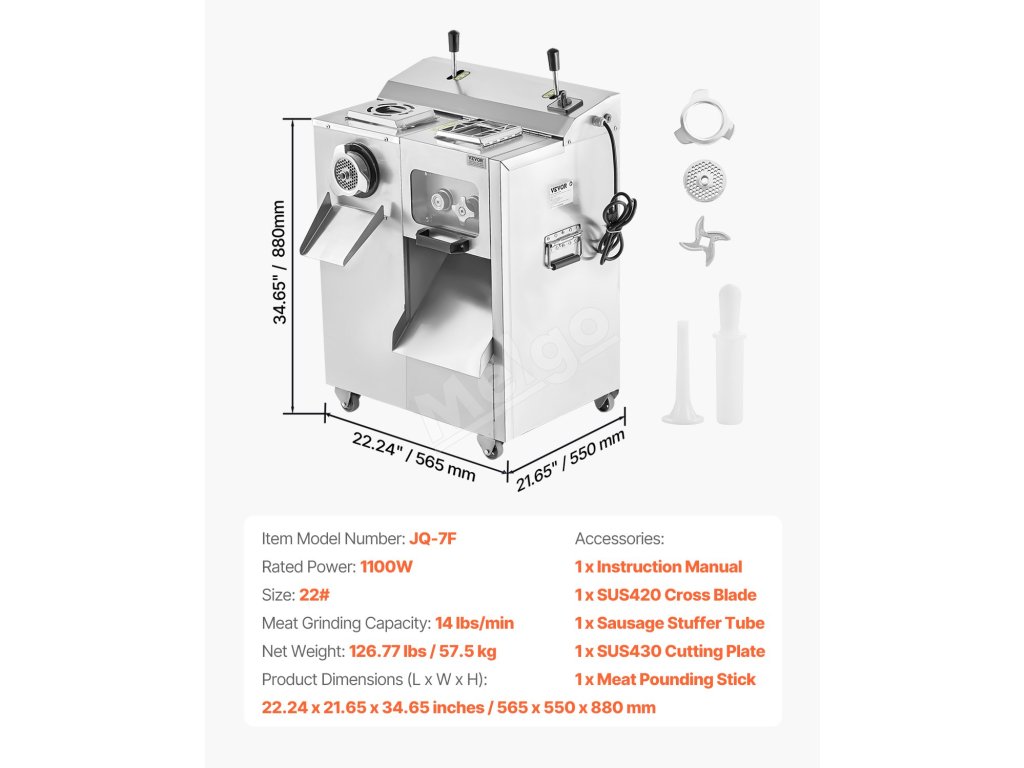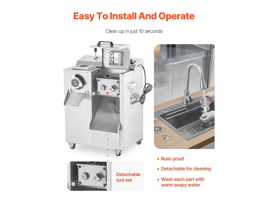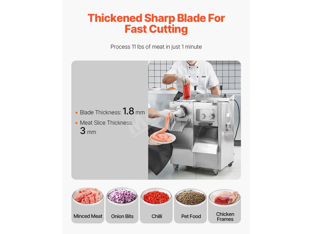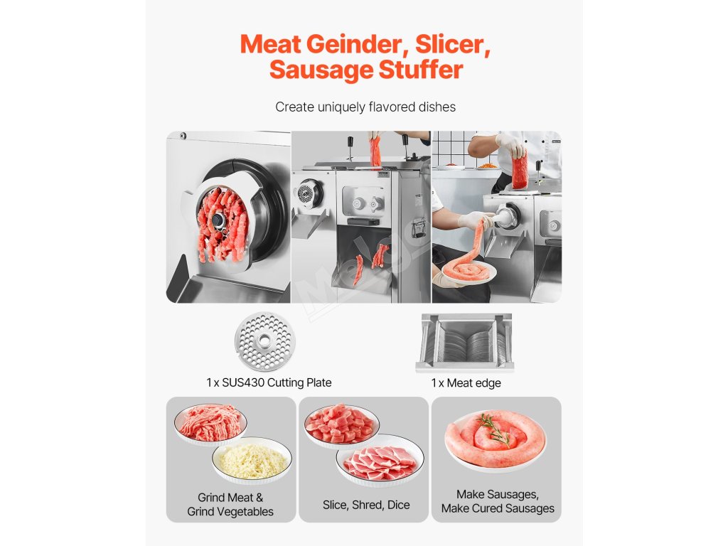 Tento komerčný mlynček na mäso a krájač vhodný na mletie a krájanie mäsa, rýb a zeleniny je ideálny pre kuchyne, reštaurácie a továrne - slúži na osobné aj komerčné potreby.