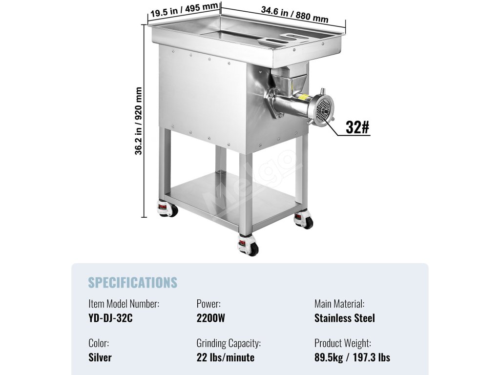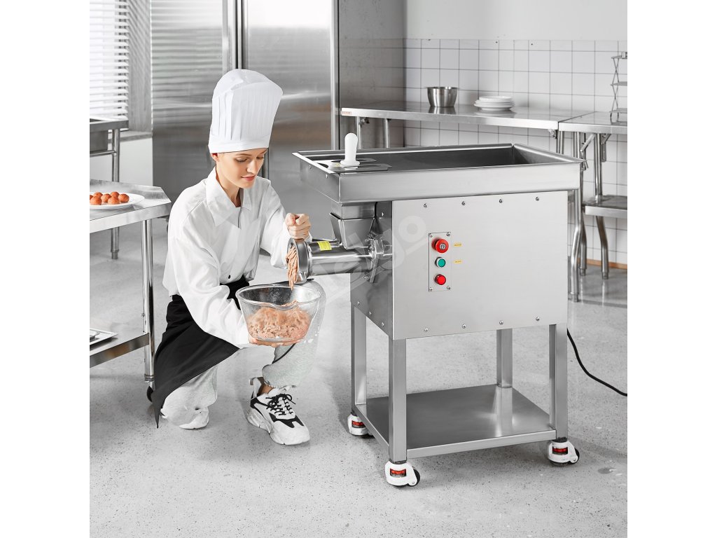 Mlynček na mäso je vybavený 4 pojazdnými kolieskami, z ktorých 2 sú vybavené brzdami, čo vám umožní bez námahy premiestniť zariadenie na akékoľvek miesto. Je vhodný najmä na použitie v mäsiarstvach, supermarketoch, reštauráciách s rýchlym občerstvením, hoteloch a potravinárskych prevádzkach.