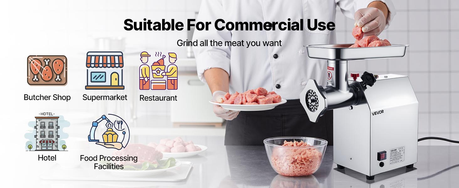 Tento mlynček na mäso je vhodný na mletie rôznych druhov mäsa, takže je ideálny na použitie v mäsiarstvach, supermarketoch, reštauráciách, hoteloch a potravinárskych zariadeniach.