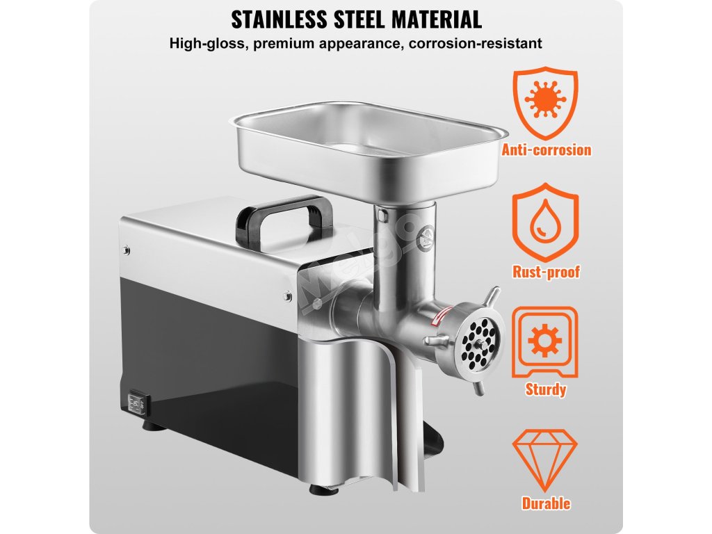 Elektrický mlynček na mäso 5 lbs/min nerezový s nožom a mriežkou