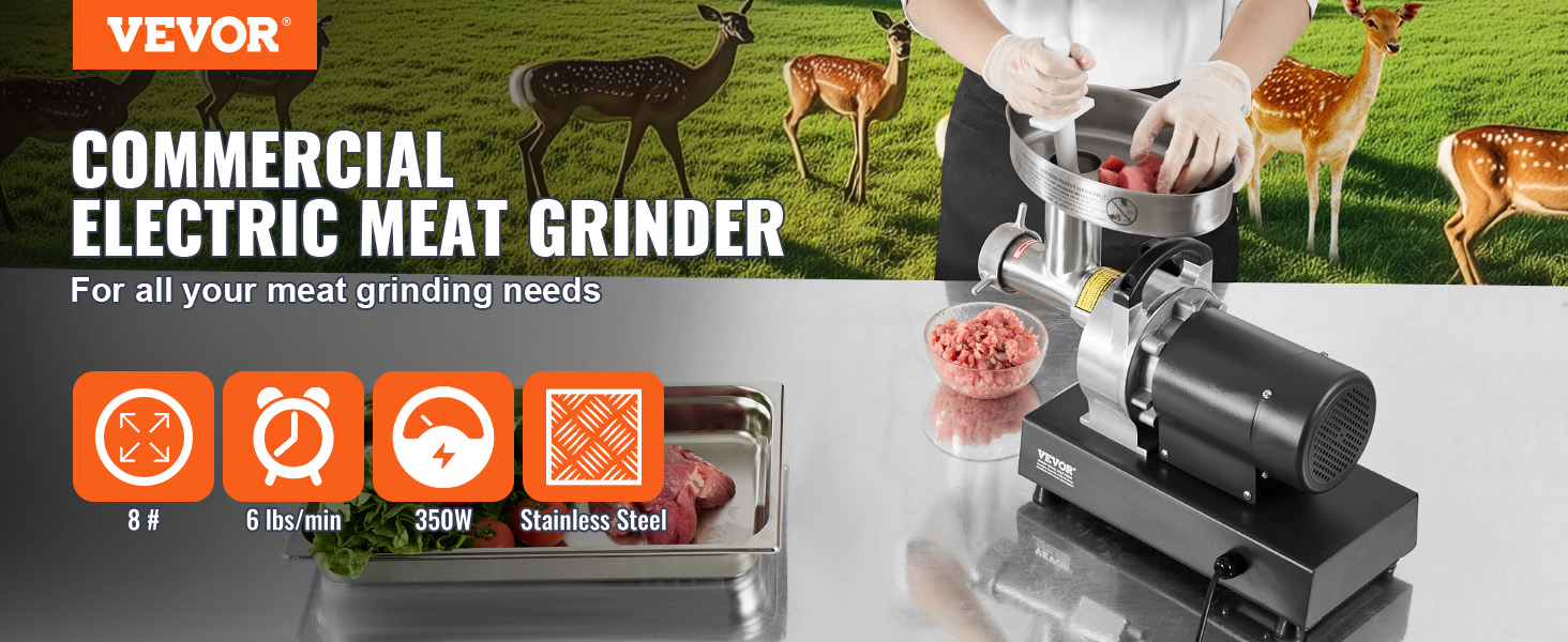 Komerčný stolový mlynček na mäso s veľkosťou úst 8# je vybavený vysoko účinným 350W motorom z čistej medi, ktorý dokáže zomlieť 6 libier mäsa za minútu. Je vyrobený z nehrdzavejúcej ocele, je robustný a odolný. Čepeľ SUS420, ktorá dokáže mlieť rôzne druhy mäsa, je ideálna na komerčné použitie.