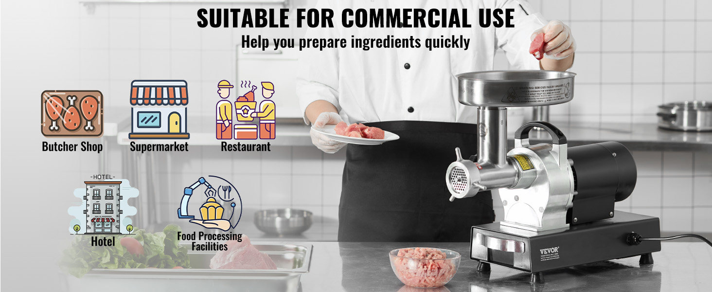 Tento mlynček na mäso je vhodný na mletie rôznych druhov mäsa, takže je ideálny na použitie v mäsiarstvach, supermarketoch, reštauráciách, hoteloch a potravinárskych zariadeniach.