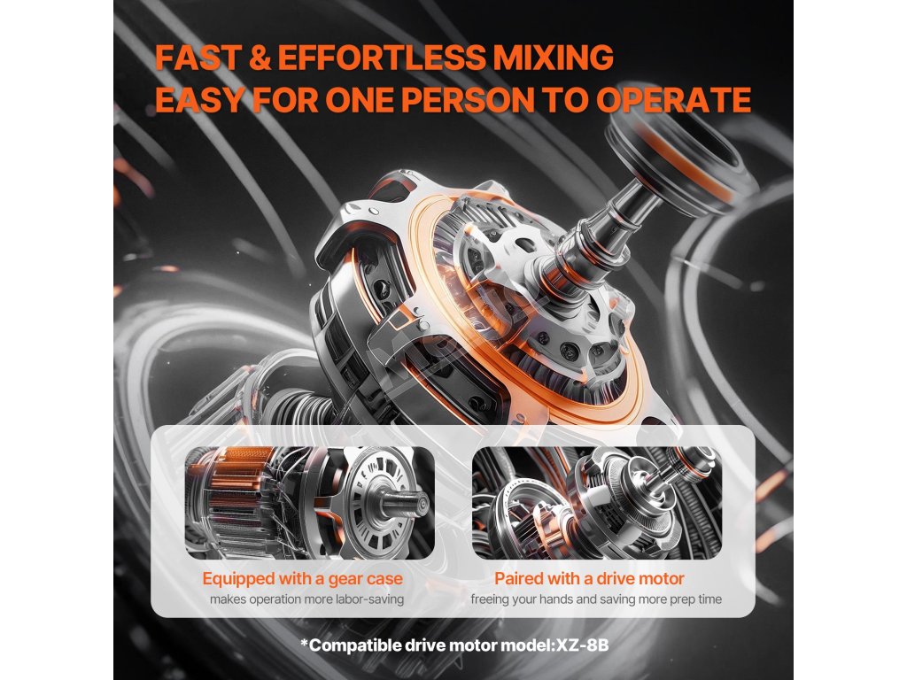 Konštrukcia prevodovky uľahčuje miešanie v spojení s pohonnými motormi VEVOR XZ-8B/XZ-12B. Uvoľní vám ruky a umožní rýchlejšie a rovnomernejšie miešanie.