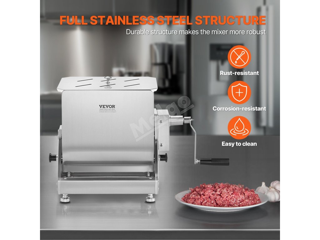 Tento 15-librový mixér na mäso je vyrobený z odolnej nehrdzavejúcej ocele 201, ktorá zaručuje dlhodobú pevnosť. Ľahko sa ovláda a dokáže účinne premiešať veľké množstvá rôznych druhov mäsa.