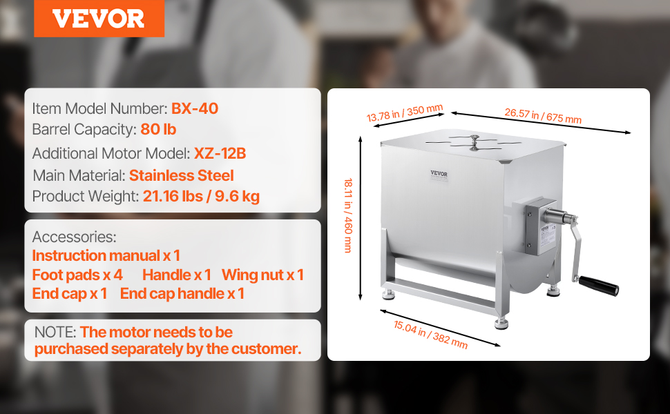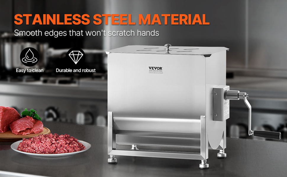 Mixér na mäso má nádrž s kapacitou 80 libier, ktorá je ideálna na mixovanie mäsa s omáčkami a korením. Možno ho použiť na výrobu klobás, iných pochúťok alebo dokonca na prípravu krmiva pre zvieratá.