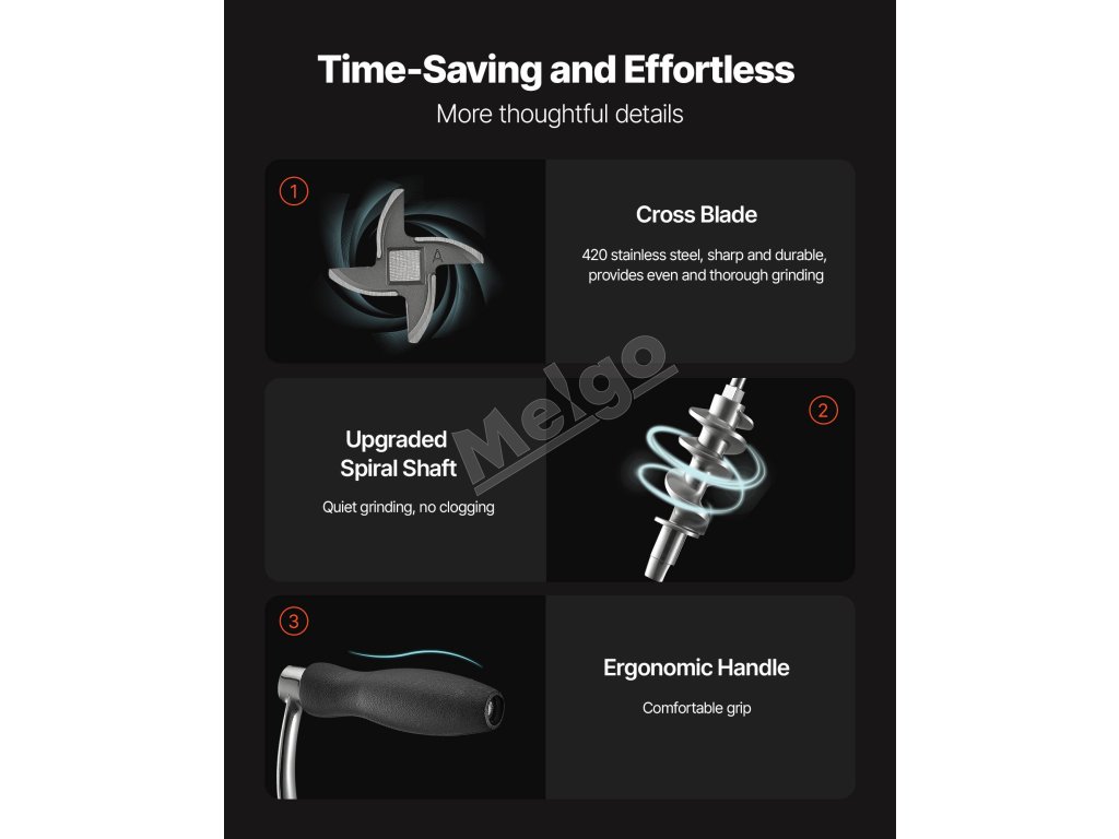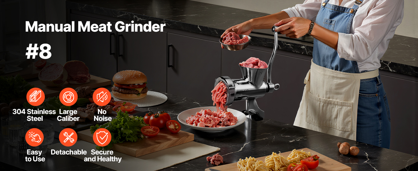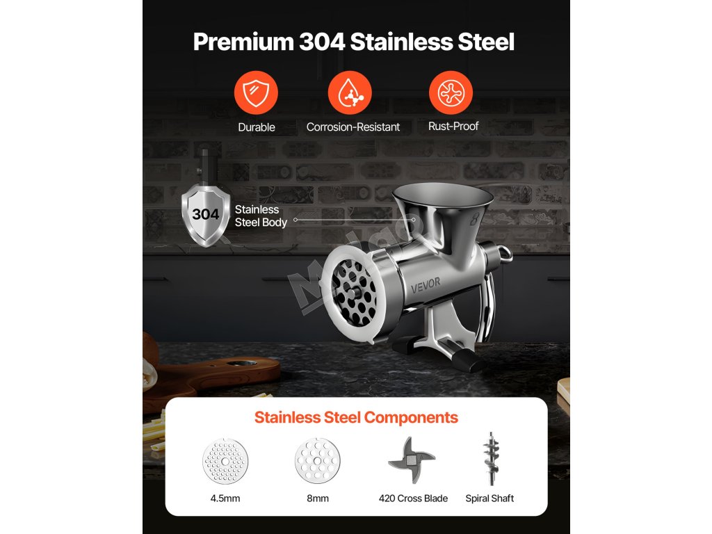 Či už ide o mäso, zeleninu alebo korenie, tento odolný mlynček na mäso si so všetkým ľahko poradí, čo vám umožní preskúmať vašu kulinársku kreativitu a pripraviť množstvo chutných jedál.