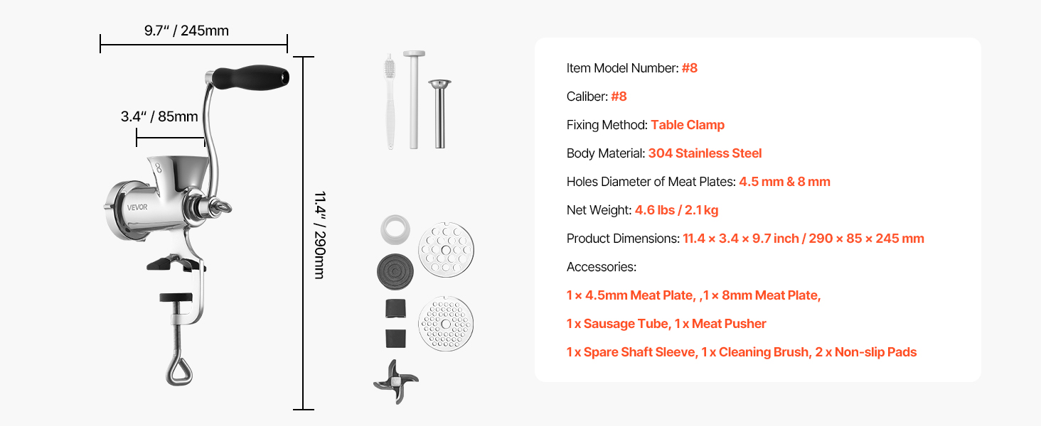 Robustná svorka sa pevne pripevní k doske stola a ponúka kompaktný dizajn, ktorý spĺňa vaše každodenné potreby pri varení. Vychutnajte si radosť z varenia zakaždým s naším multifunkčným ručným mlynčekom na mäso.