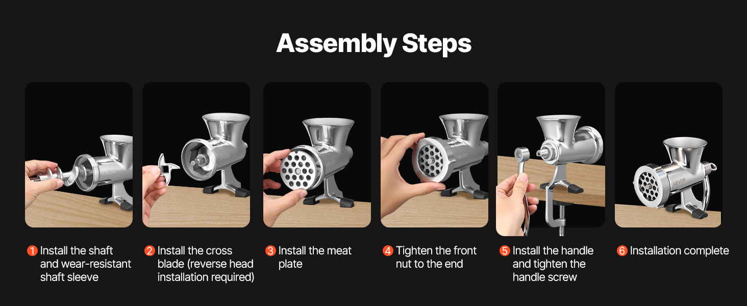 Nie je potrebné žiadne náradie - stačí niekoľko jednoduchých krokov na inštaláciu ručného mlynčeka na mäso a v okamihu môžete začať variť.