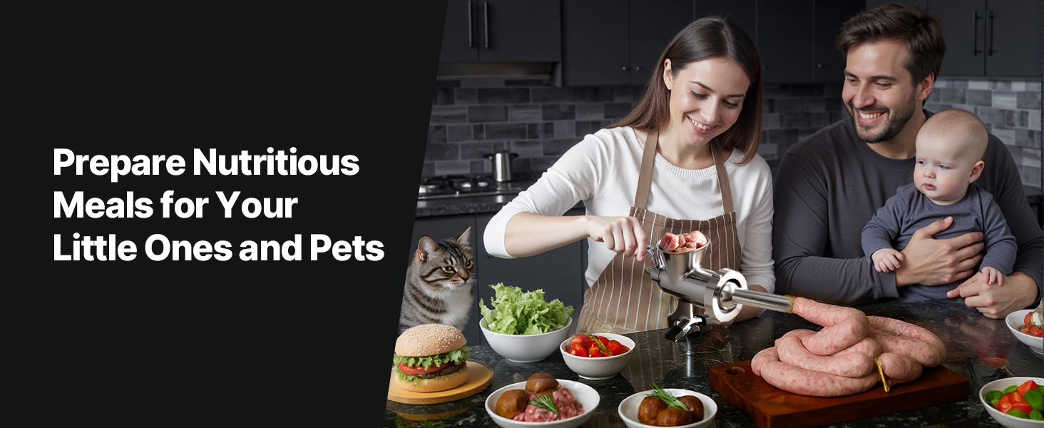 Stolný upínací mlynček na mäso je ideálny nielen na ľudskú stravu, ale aj na prípravu čerstvých a zdravých jedál pre vašich domácich miláčikov vrátane mačiek a psov, čím sa zabezpečí ich rovnako dôležitá výživa.
