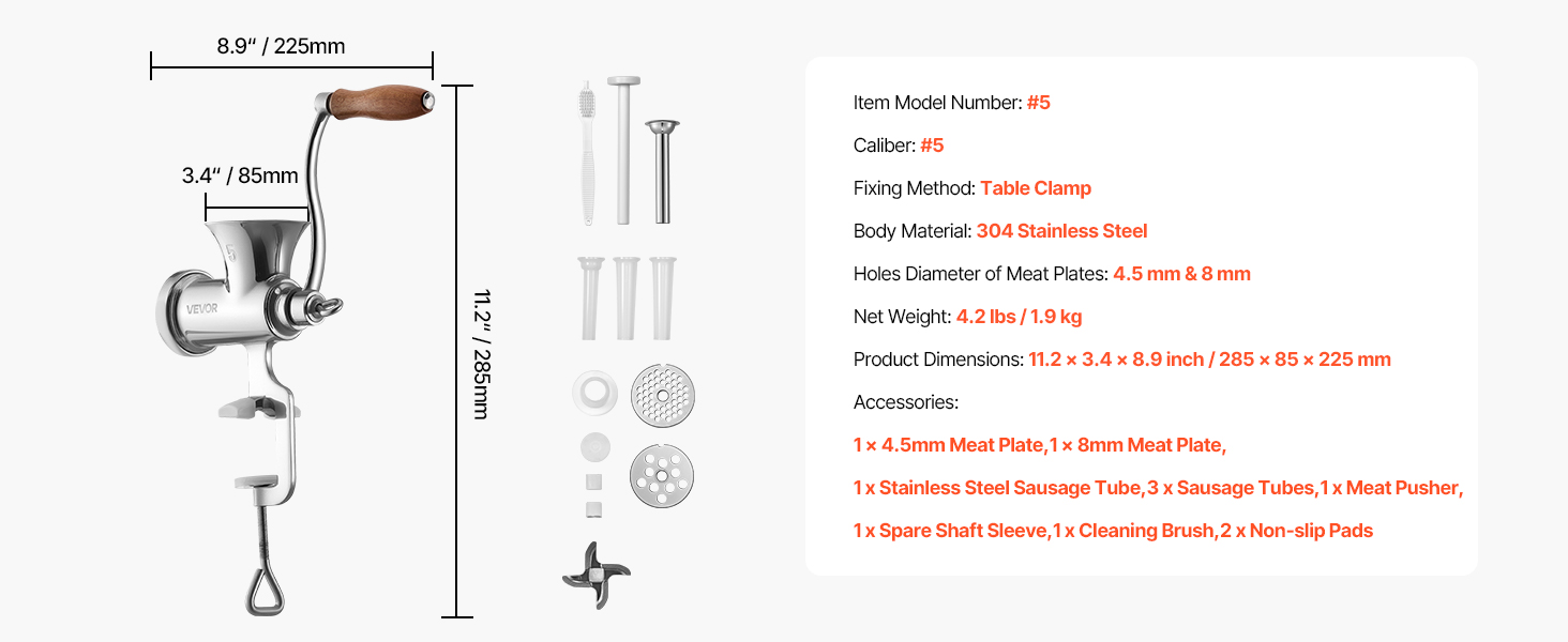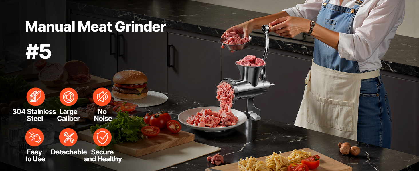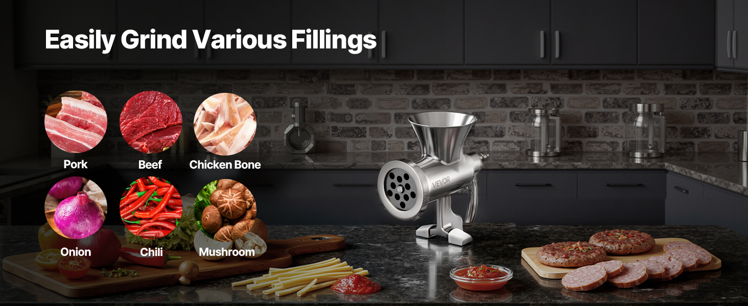 Či už ide o mäso, zeleninu alebo korenie, tento odolný mlynček na mäso si so všetkým ľahko poradí, čo vám umožní preskúmať vašu kulinársku kreativitu a pripraviť množstvo chutných jedál.