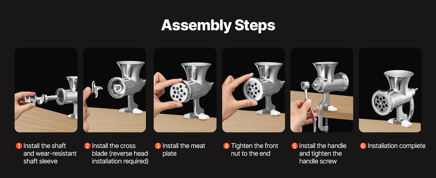 Nie je potrebné žiadne náradie - stačí niekoľko jednoduchých krokov na inštaláciu ručného mlynčeka na mäso a v okamihu môžete začať variť.