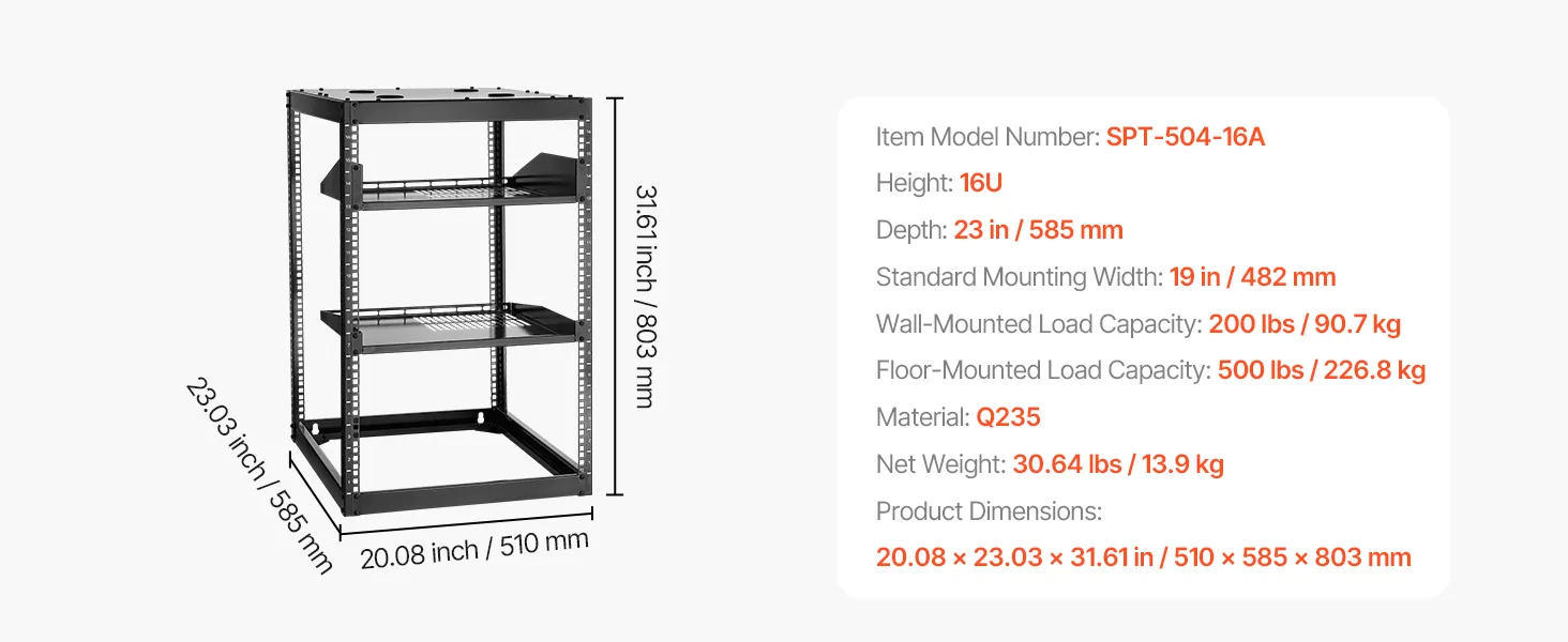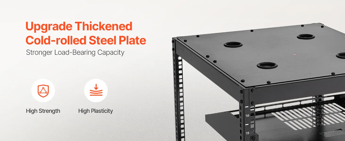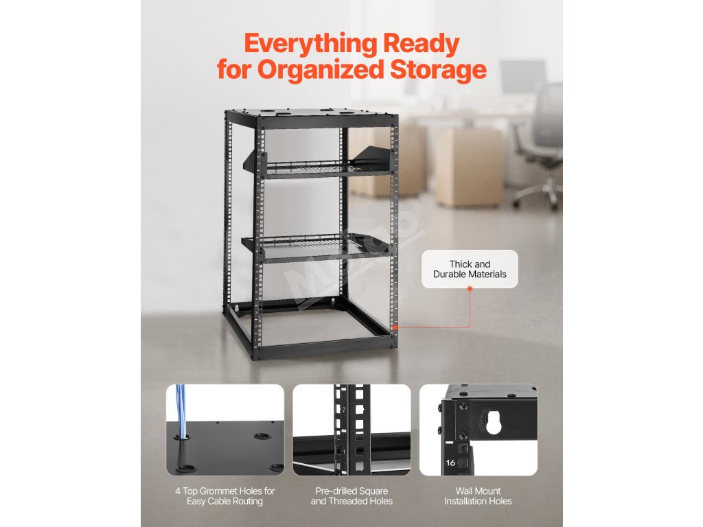 Tento sieťový stojan s otvoreným rámom má robustnú konštrukciu, odoláva otrasom a deformáciám, je spoľahlivý na dlhodobé používanie.