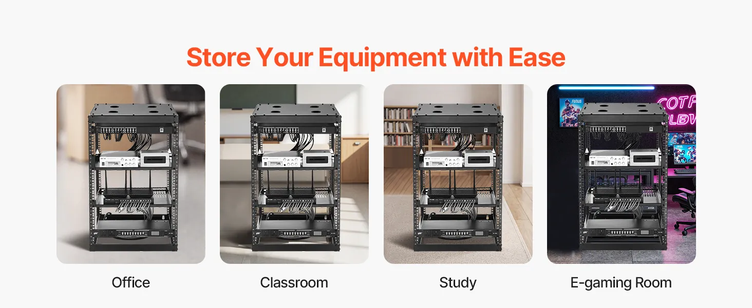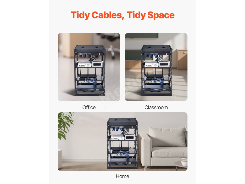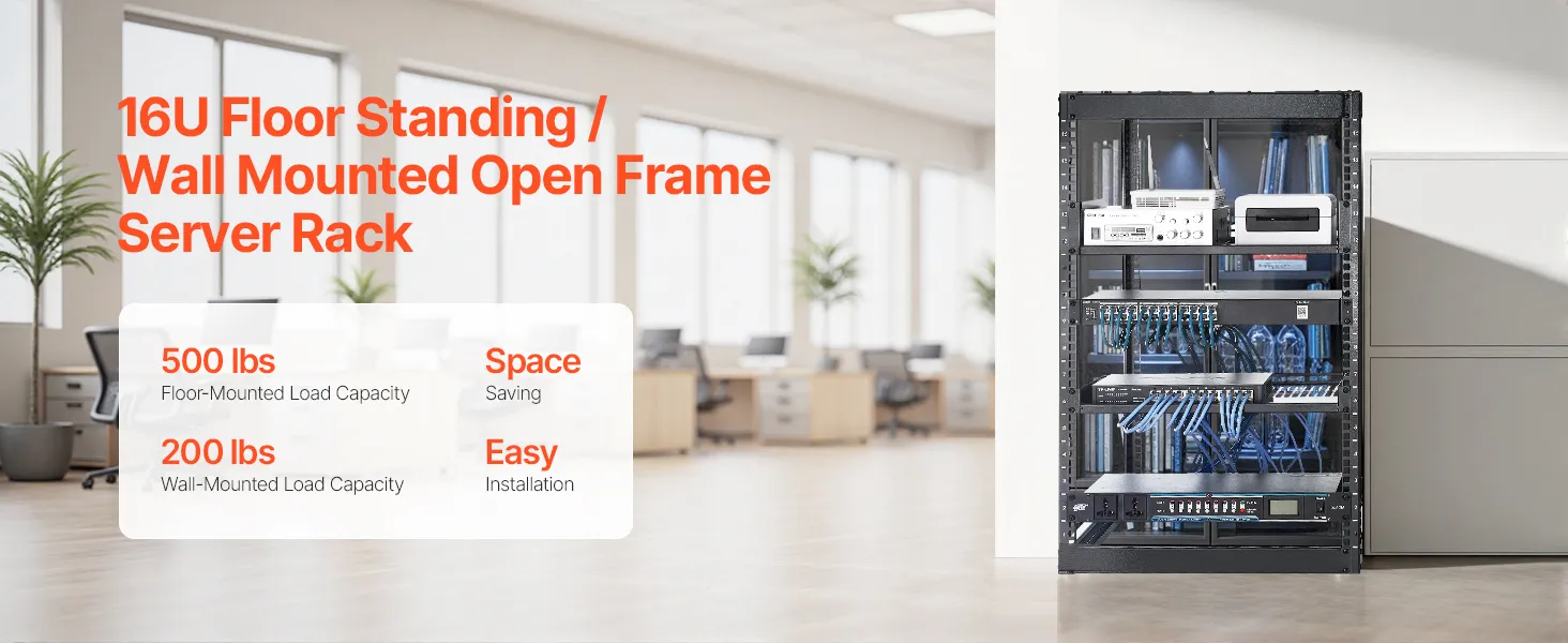 Tento rack s otvoreným rámom sa zmestí do stiesnených priestorov, je ideálny do domácností, kancelárií a nízkonapäťových miestností.