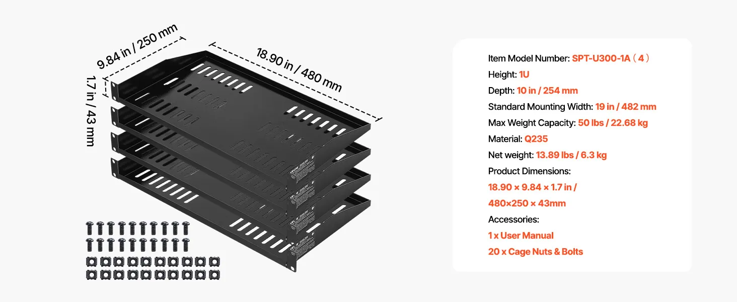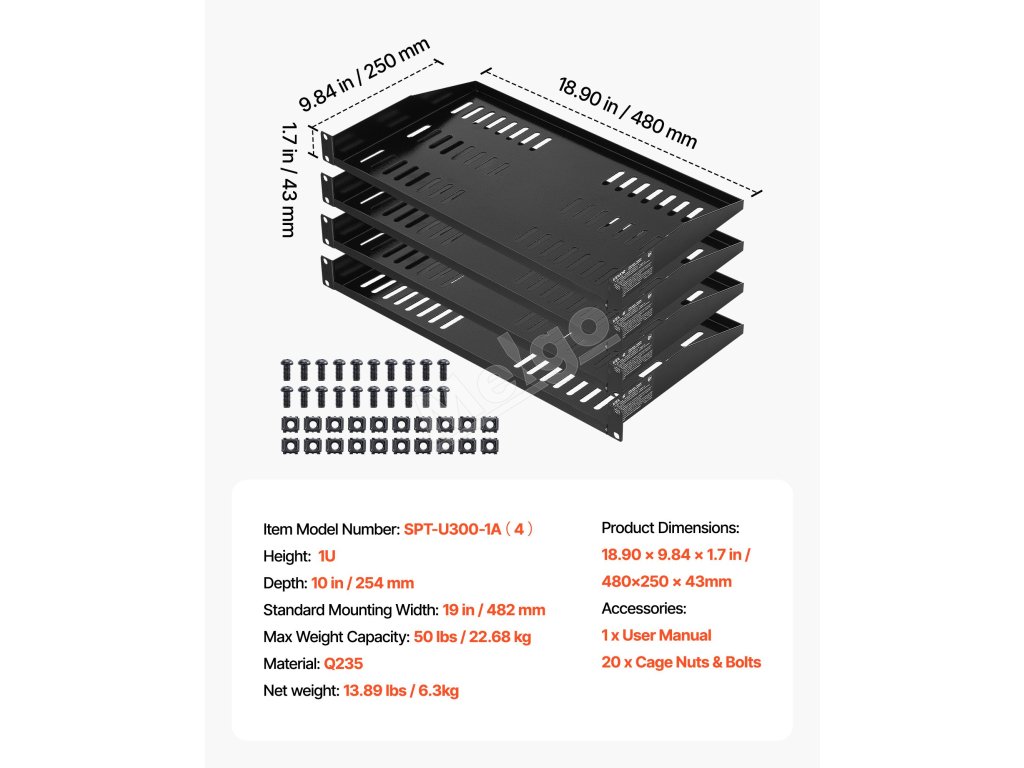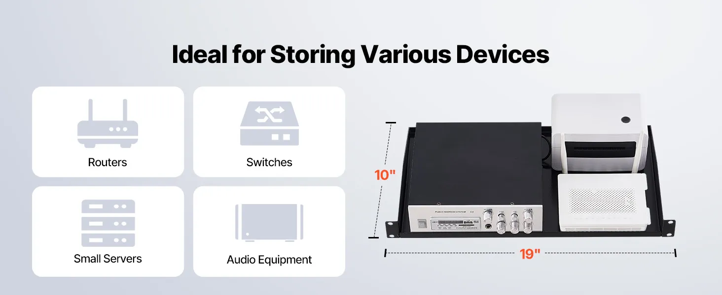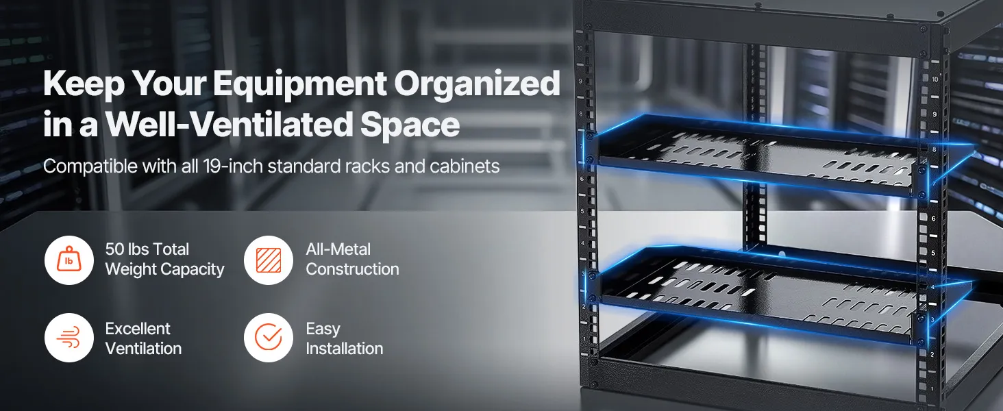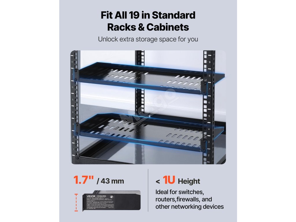 Vylepšite svoj pracovný priestor pomocou našej police do sieťového stojana, ktorá poskytuje spoľahlivú podporu v každej kancelárii alebo dátovom centre! Štandardná výška 1U je vhodná pre všetky 19-palcové serverové stojany alebo skrine, pričom pevná konštrukcia z uhlíkovej ocele udrží až 50 libier (22,68 kg) na jednu policu. Vetraná konštrukcia udržuje vaše zariadenia v chlade!