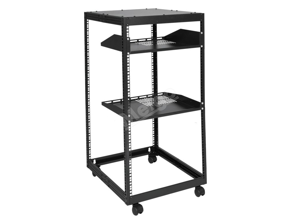 Serverový rack 20U otvorený 4-stĺpový, hĺbka 58.5-101.6cm s kolieskami