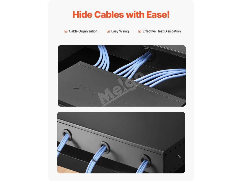 Táto zásuvka serverového stojana umožňuje lepšiu organizáciu káblov a udržiava káble skryté vzadu.