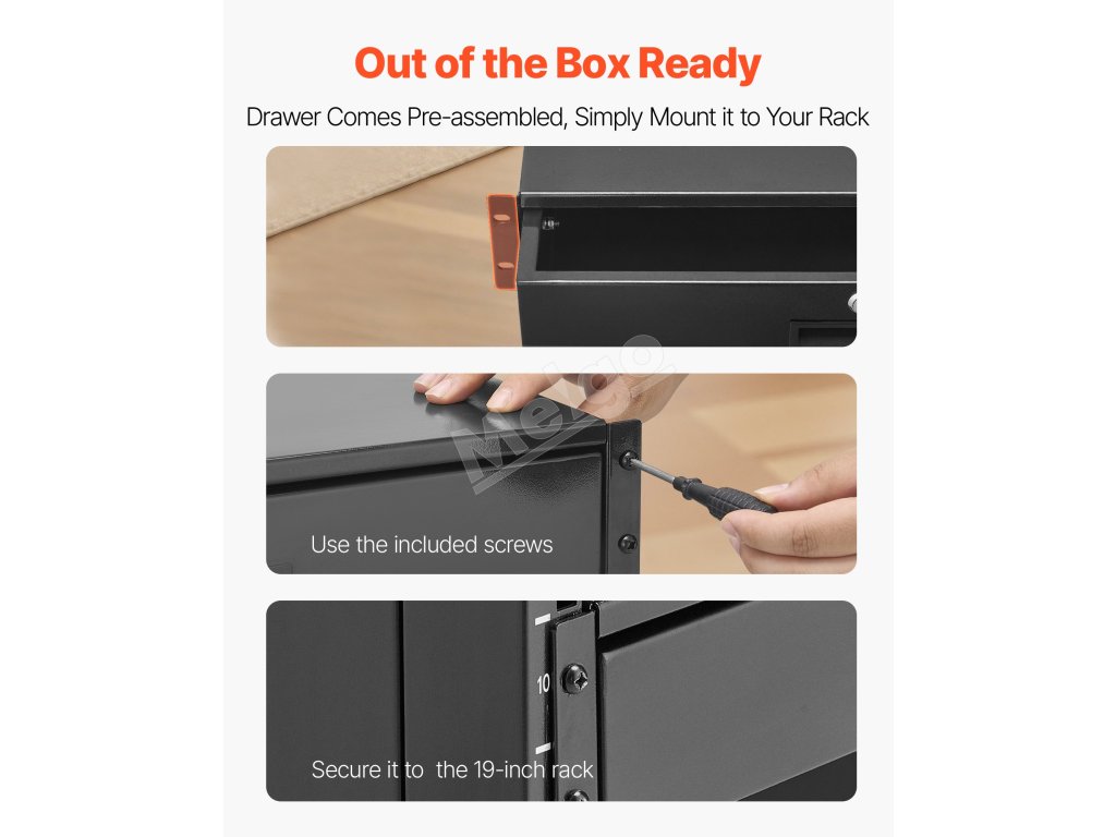 Táto racková zásuvka je navrhnutá tak, aby sa zmestila do štandardných 19-palcových serverových stojanov a skríň. Je vyrobená z pevnej ocele a unesie hmotnosť až 22,68 kg (50 libier). Uzamykateľná zásuvka poskytuje dodatočnú bezpečnosť pre vaše cenné zariadenia, zatiaľ čo 3 otvory na vedenie káblov udržujú váš pracovný priestor uprataný a organizovaný.