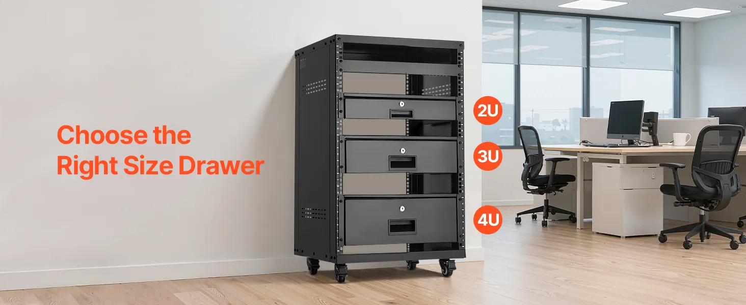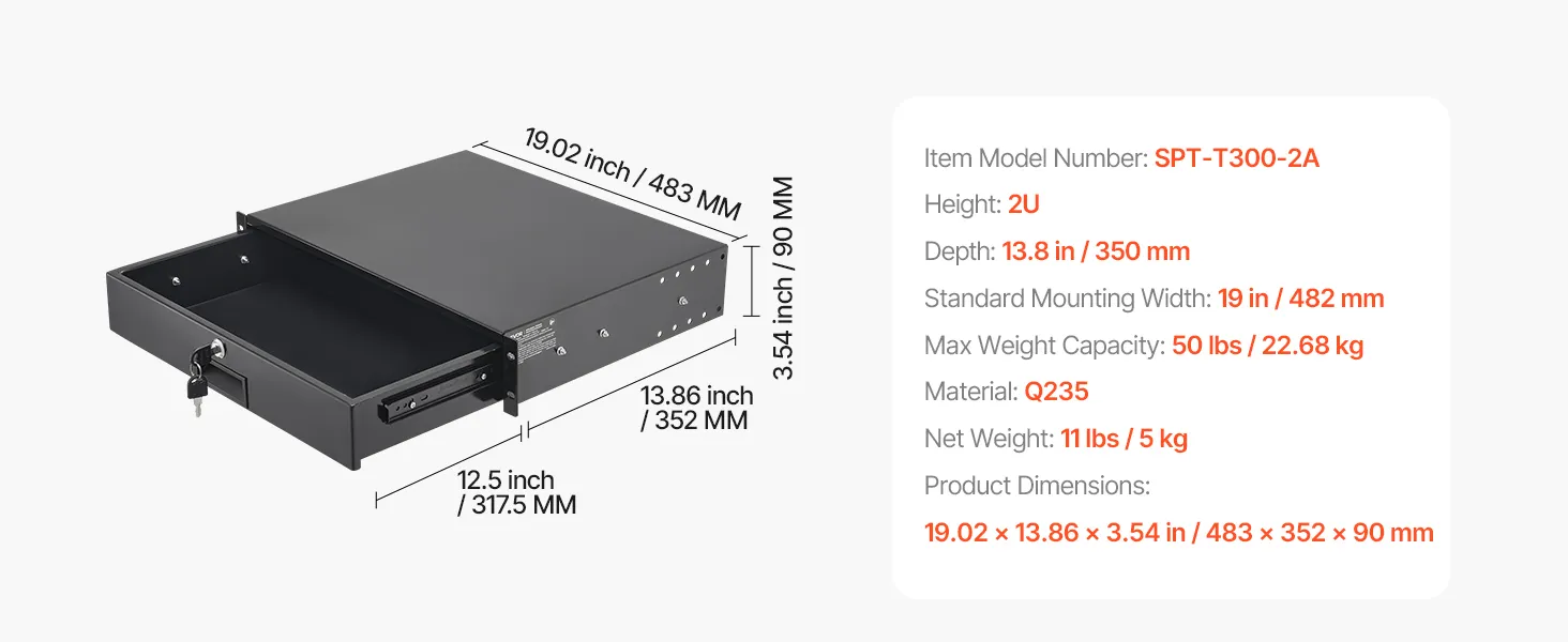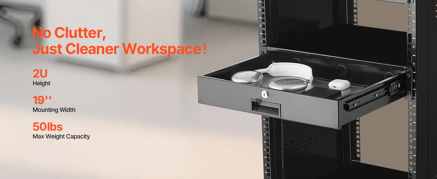 Zásuvka 2U do serverového racku, nosnosť 22.68 kg, zamykateľná