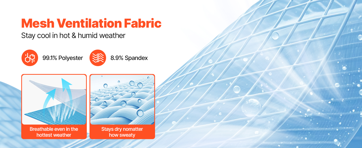 Zmiešavame 91,1 % polyesteru s 8,9 % spandexu pre pružné, rýchloschnúce pohodlie. Vzdušná sieťovina bojuje proti teplu a vlhkosti, takže sa môžete sústrediť na vzrušenie, nie na pot.